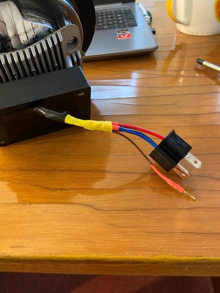 Die LED mit angelöteten H4 Steckern und Mini-Banane .