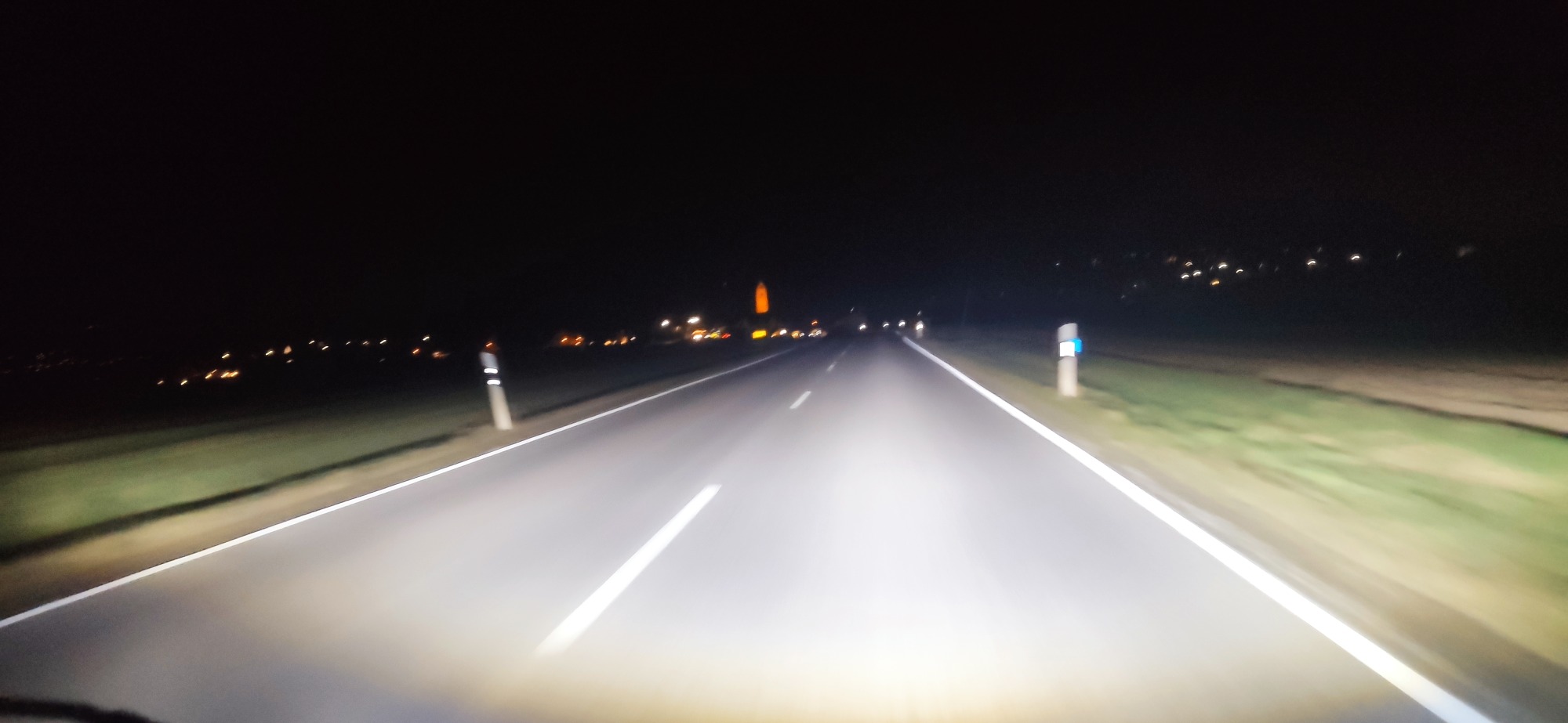 Bilder welche die Ausleuchtung der Straße bei Nacht dokumentieren kommen noch.