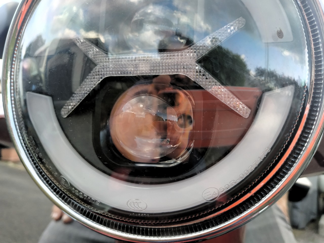 Der Scheinwerfer verfügt für unsere Fahrzeuge über ein E-Prüfzeichen und ist mit Fernlicht, Tagfahrlicht und Abblendlicht versehen.