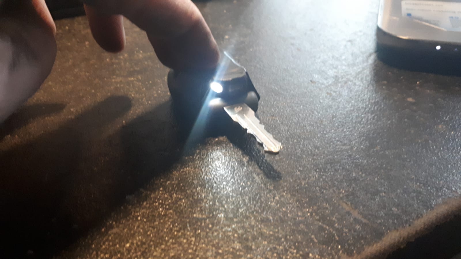 Ich habe mir auf einem beleuchteten Abusschlüssel etwas ähnliches gebastelt : Schlüssel und alles überstehende abgesagt und rund geschliffen und dann fürs Erste mit Isolierband an dem Schlüssel befestigt.