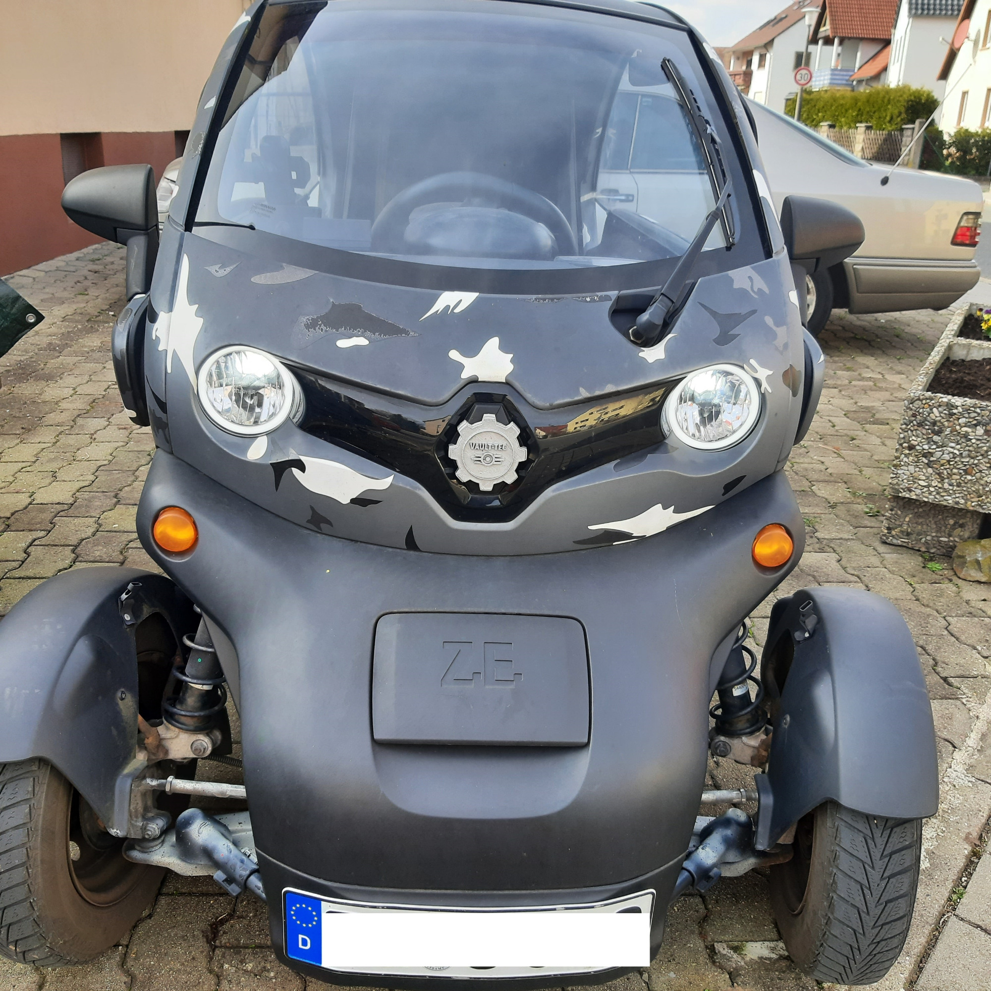 Twizy Sport-Edition Bj.2017; vorne 145/70R13, hinten 165/70R13; LED-Scheinwerfer von Crawer; organische Bremsbeläge; Castrol TRANSMAX AXLE 75W-90; Mietakku, Getriebezusatzlager, Highsider Rocket Rück/Bremslichter mit Blinker