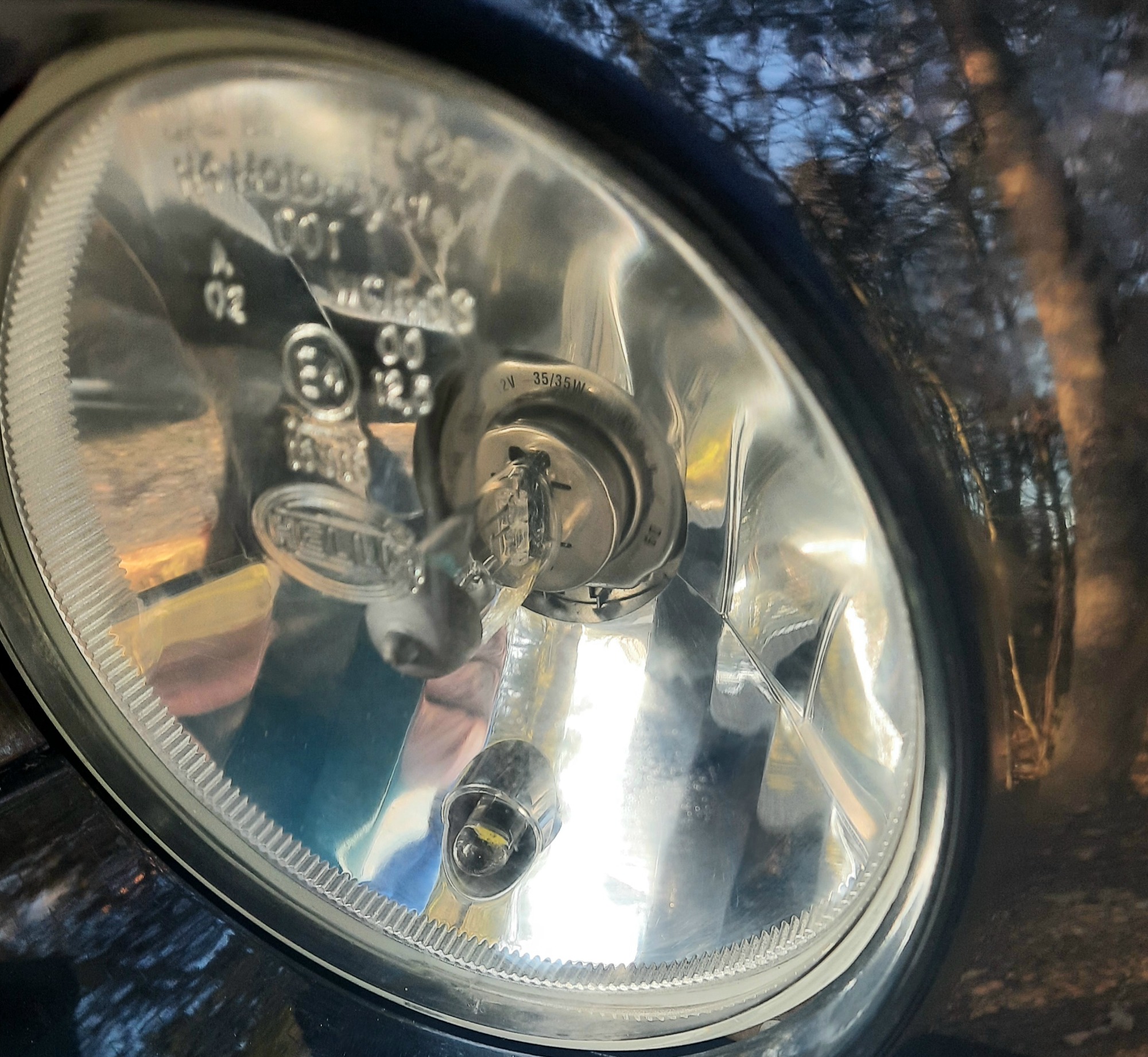 Habe Led Scheinwerfer mit" e" Prüfzeichen aus Kinesien bekommen.Habe ja schon die 35/35 Watt Birnen.mit Gutachten der Prüfstelle eingebaut.Da Die Original Leuchten im Alter innen : matt und Dunkel sind.Habe ich mich jetzt getraut.mit einem Mikrofaser Tuch.den Scheinwerfer innen zu reinigen.mit Erfolg!! Sogar der Reflektor.wo gerne ein bisschen Problematisch ist.da der " Spiegel" (Alu) oft auf Kunststoff aufgedampft ist.und dann nicht besonders Abrieb fest! Ist!!Bei mir .Ohne Probleme gereinigt werden konnte.Vermutlich verstärkt die innen Vermschmutzte Streuscheibe die Waermeentwicklung noch durch Absortion!Mann müsste auf den Photos den Unterschied erkennen können!! Ich baue wieder meine 35 Watt Birnchen ein und lasse die Original Scheinwerfer drin.sehen aus .Wie neu.Lasse meinen Twity besser Originel.und sende die led Lichter wieder zurück nach Kinrsien