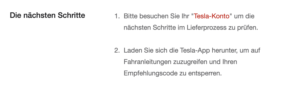 Kein Anruf von Tesla, zwei mal die gleiche SMS, eine E-Mail, die Daten konnte ich online aber nicht eingeben, dann zwei Anrufe in Eigeninitiative, und immer noch: nix genaues weiß man nicht.