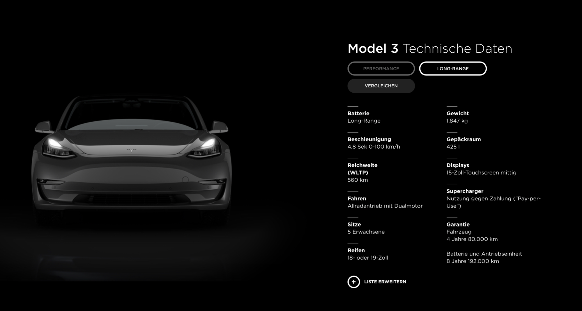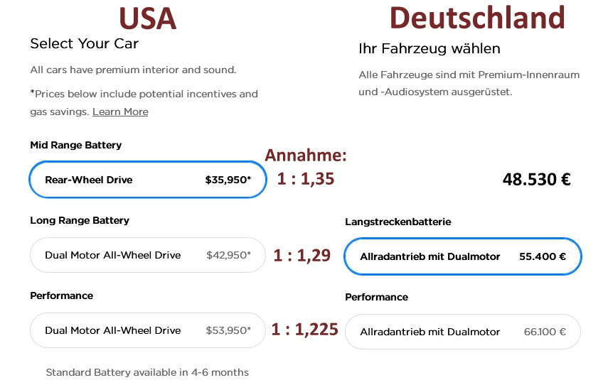 Damit käme der Tesla auch in eine akzeptablere Region, bleibt die Frage, ab wann diese Variante in Deutschland konfigurierbar sein wird