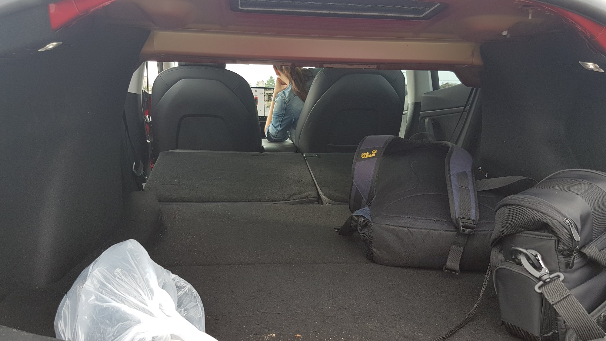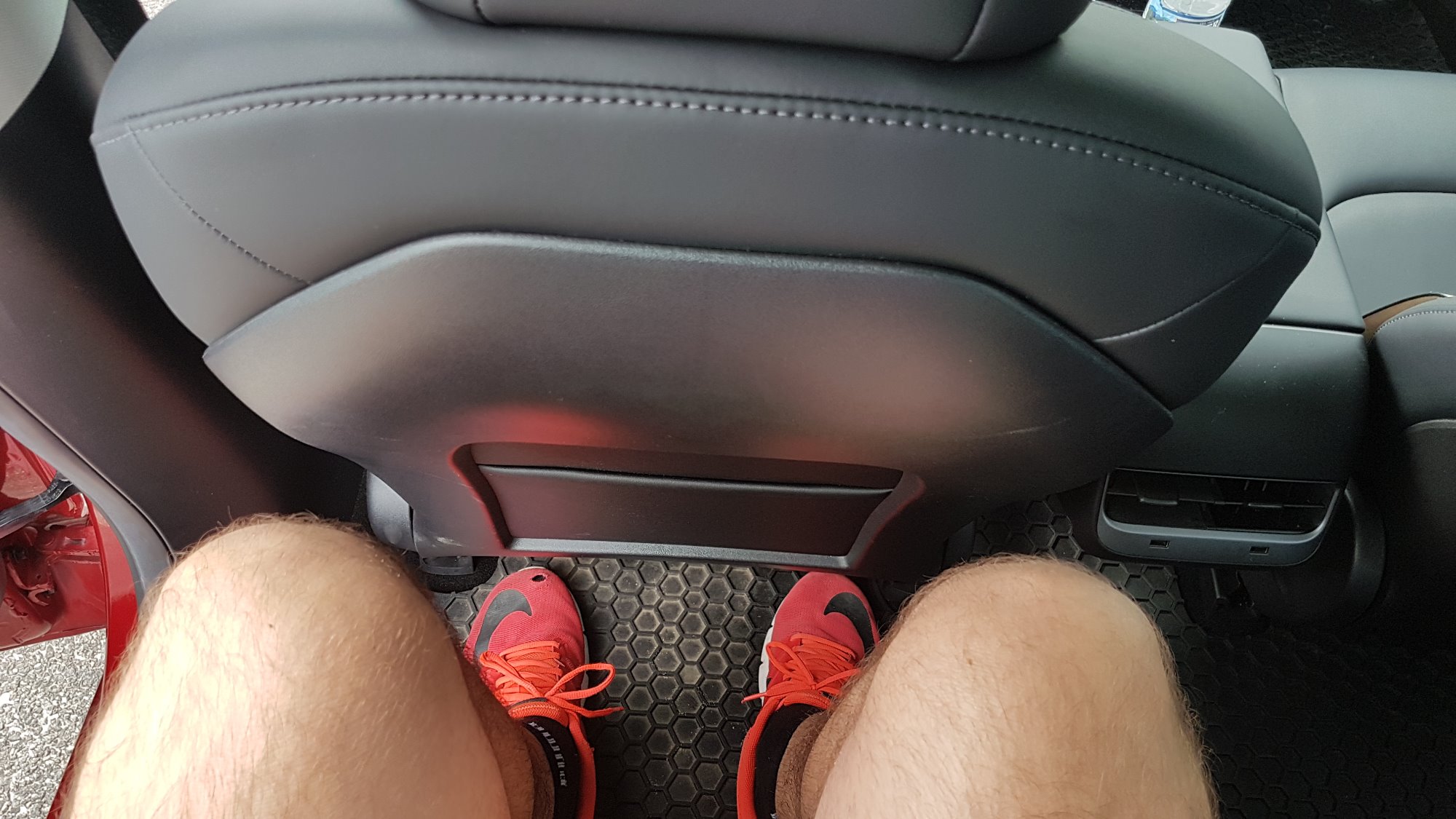 Auch hinten ist genug Platz fuer mich, wenn der Sitz vorne auf meine Groesse eingestellt ist. Nach oben habe ich im Fond noch ca 3 Fingerbreiten Platz ueber dem Kopf.