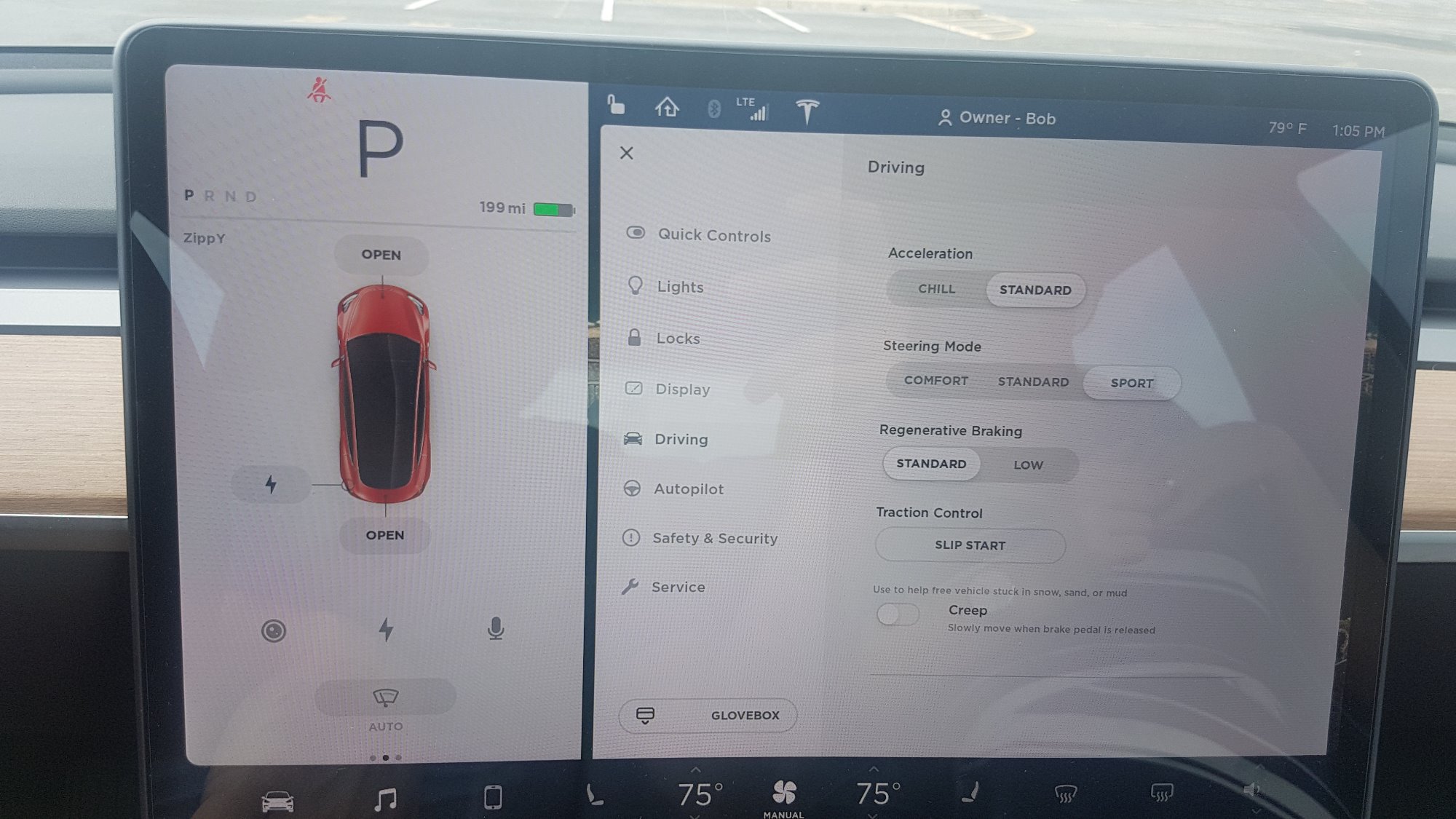 Die Bedienung wahrend der Fahrt ist auch kein Problem. Temperatur, Sitzheizung, Lueftung etc. sind mit grossen Schwarz-Weiss Icons im unteren Bereich abgebildet und ohne merkbare Ablenkung bedienbar. Gefuehlt also nicht mehr als mit Knoepfen, denn auch da schaue ich zumindest kurz hin.
