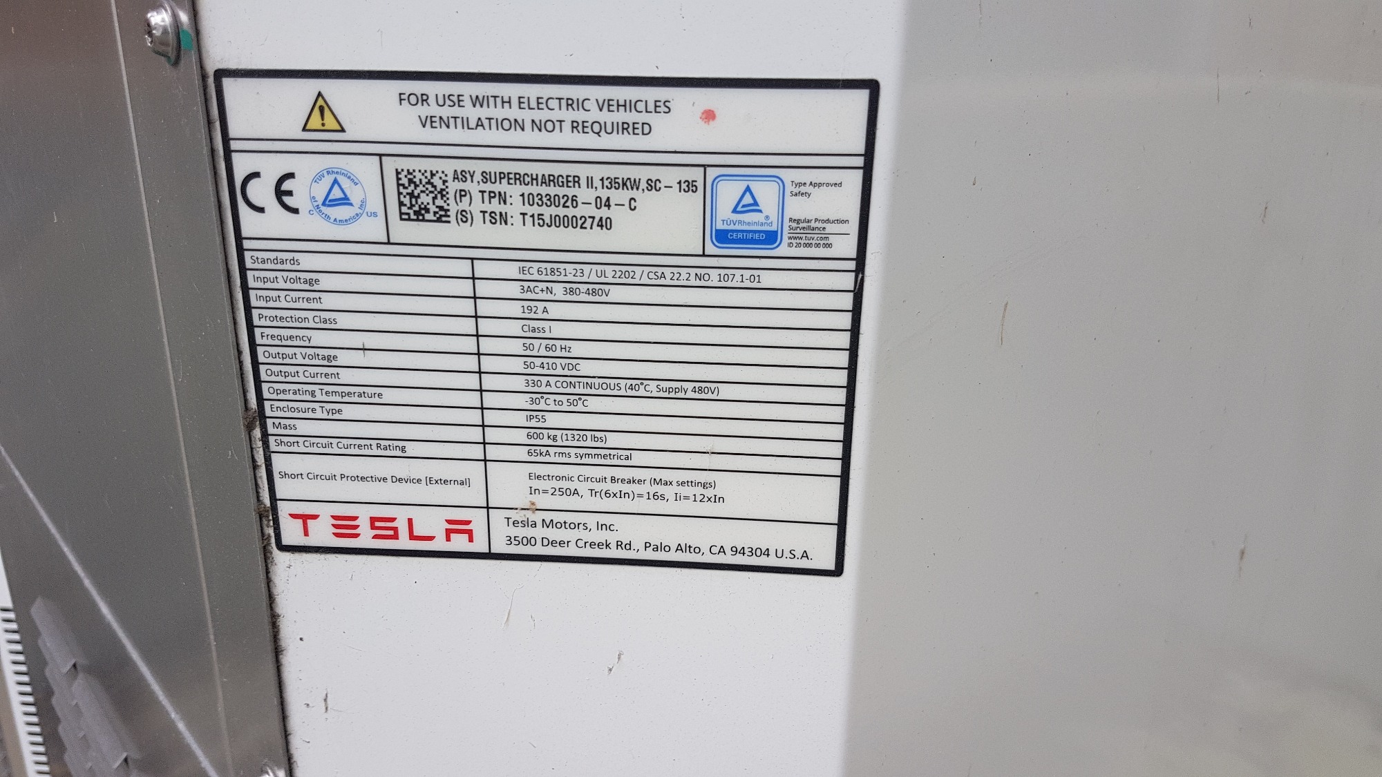 Ich habe dann auch noch die beiden Transformatoren gefunden welche die 8 Supercharger speisen, diese haben jeweis 135kw.