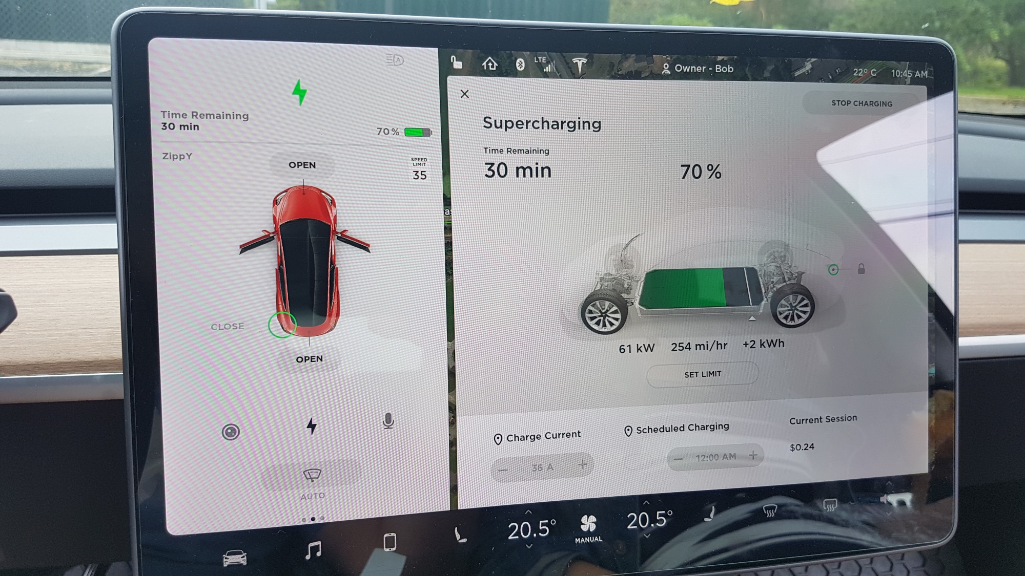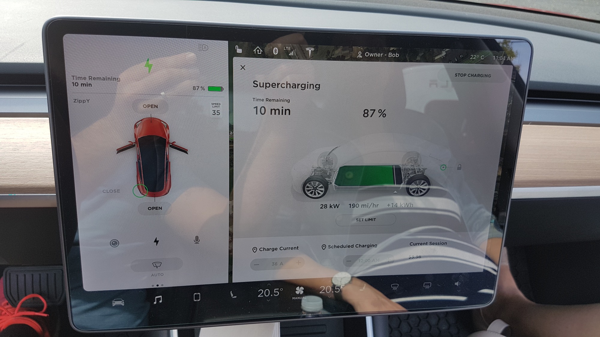 Ich bin gespannt, wie das Laden morgen am Supercharger verlaeuft und wie lange eine Vollladung dauert.