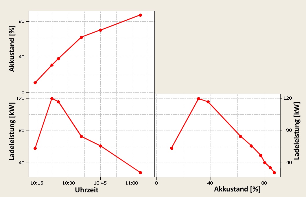 Ich habe erst gedacht dass die Leistung gedrosselt wird weil nach ein paar Minuten noch ein Model S an einen der 8 Ladepunkte hin ist. Da die Leistung aber immer weiter runter ist denke ich dass es entweder an der Batterietemperatur oder der Ladesschlusspannung liegt die bei der hohen Ladeeistung schon sehr früh erreicht wird.