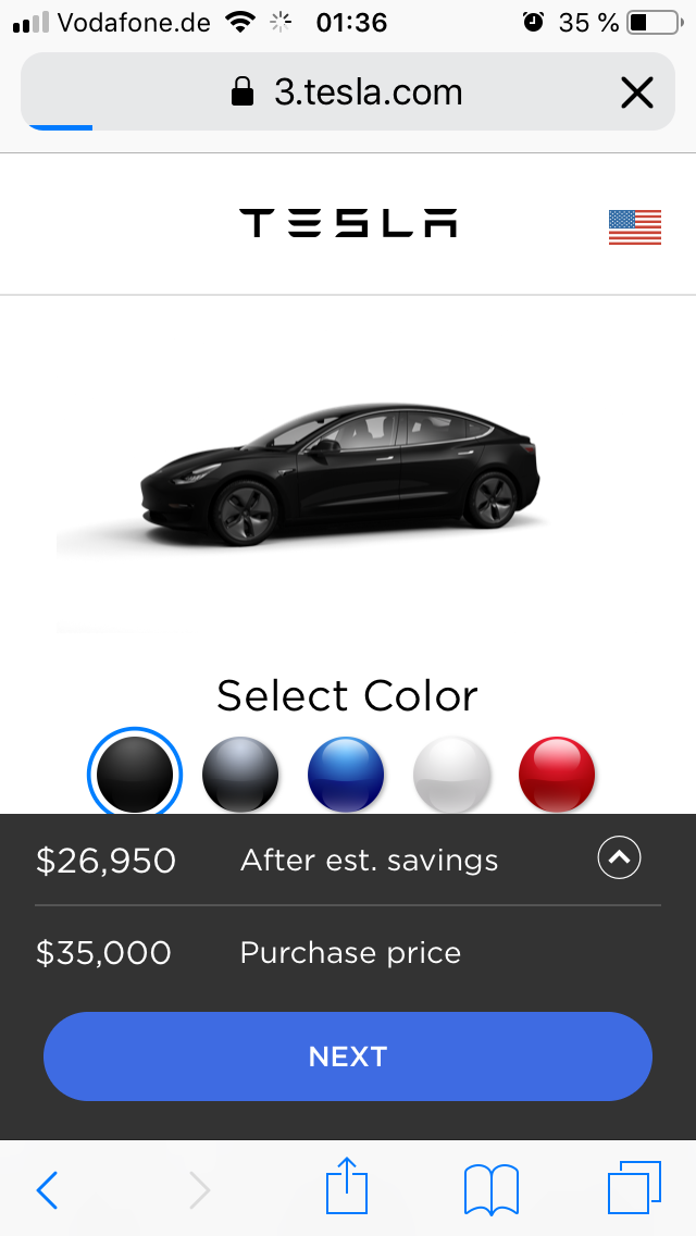 Doch als der angekündigte Termin um 23 Uhr deutscher Zeit verstrich, tat sich wenig auf dem Twitter-Konto von Elon Musk. Lediglich das Profilbild des Tesla-Chefs wechselte auf ein schwarzes Model 3, einen Tweet setzte Musk zunächst nicht ab. Dafür tat sich andernorts im Internet tatsächlich Bemerkenswertes: Auf der US-Seite von Tesla wurde pünktlich um 23 Uhr plötzlich ein Jahre altes Versprechen erfüllt. Dort kann man nun tatsächlich ein Model 3 in der Standardversion für nur 35.000 Dollar bestellen. Und angeblich wird es schon in nur zwei bis vier Wochen ausgeliefert.