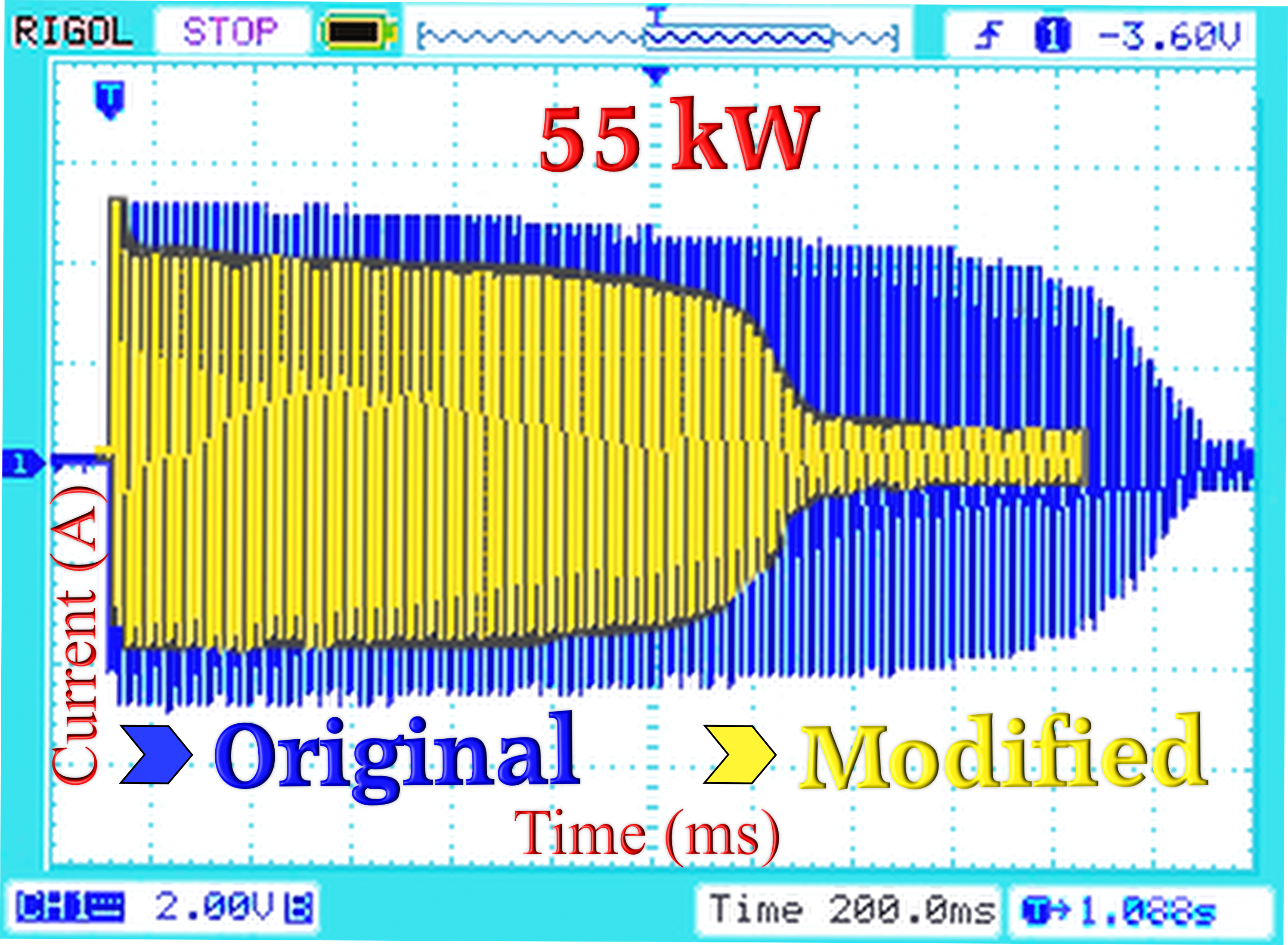 Innen ist umgewickelte Motor, außen ist original. Mit ca. 30% weniger Strom der Motor kommt auf seine Leistung und ca. 30% schneller.