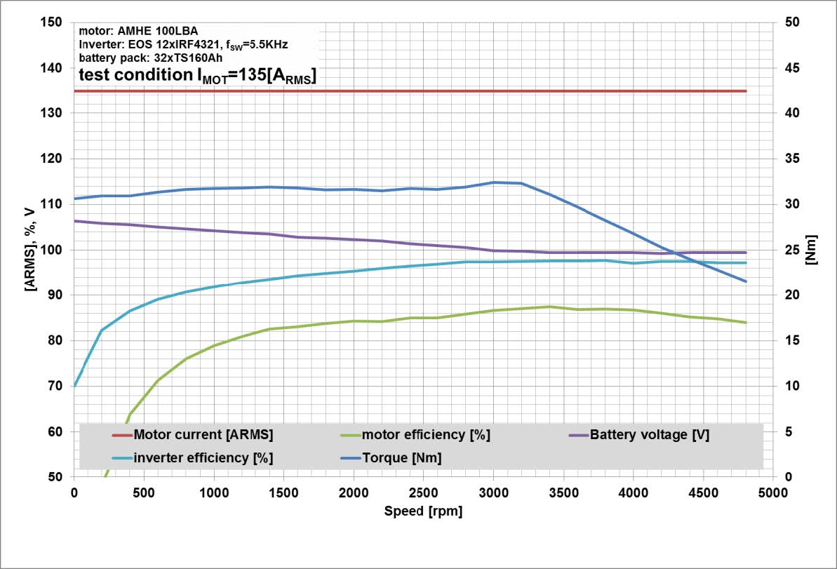Allerdings braucht der Motor dafür wohl auch höhere Ströme, d.h. "unser" SEVCON kommt noch etwas schneller an seine Limits. Eine so deutliche Leistungssteigerung per Tuning wie mit dem Standardmotor ist damit also vermutlich nicht drin. Auch könnten höhere Geschwindigkeiten ein Problem sein, wenn das verfügbare Drehmoment zu schnell sinkt.