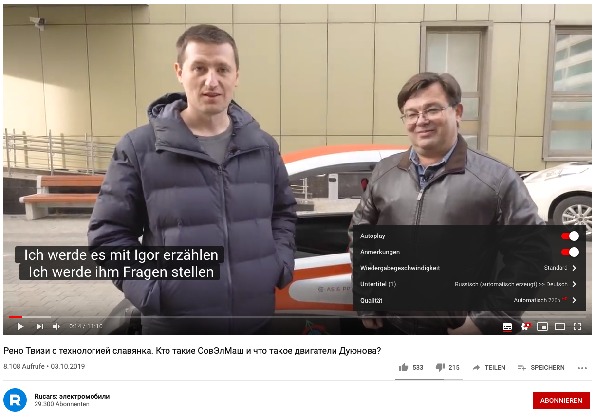 Das Video ist in russischer Sprache, aber bei 1 Minute und 40 Sekunden können Sie sehen, wie Twizi beim Start mit den Rädern dreht.