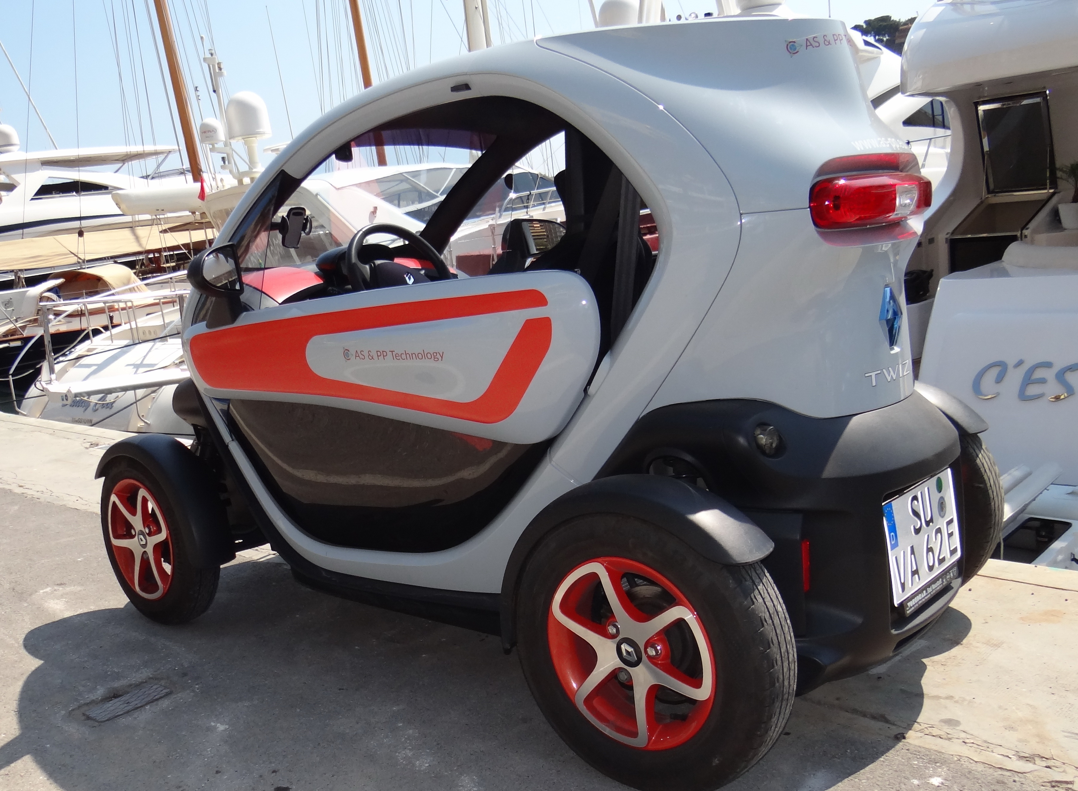 Zum Glück standen wir bei der Messe in Monaco zusammen mit einer Twizy-Vermittlung Firma.