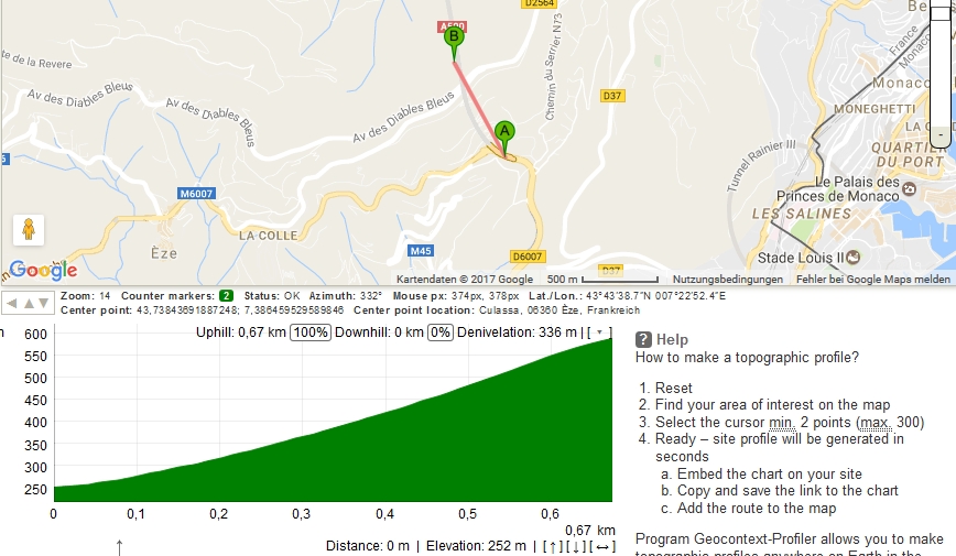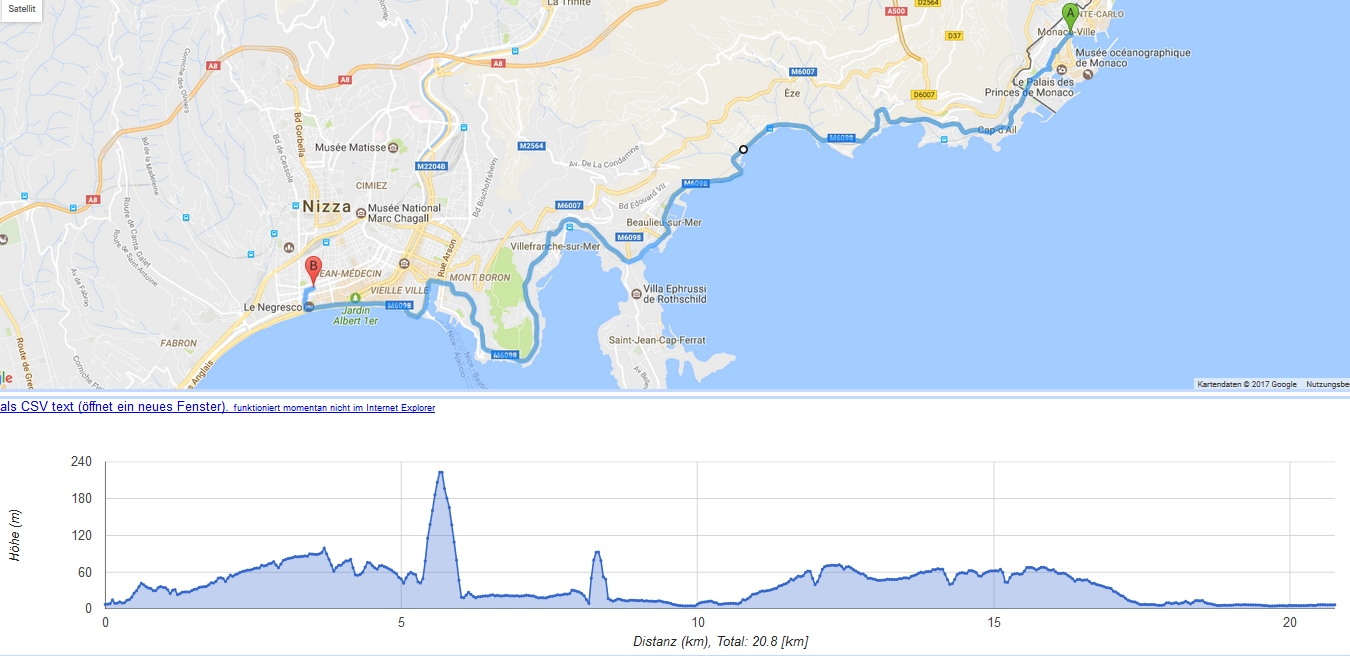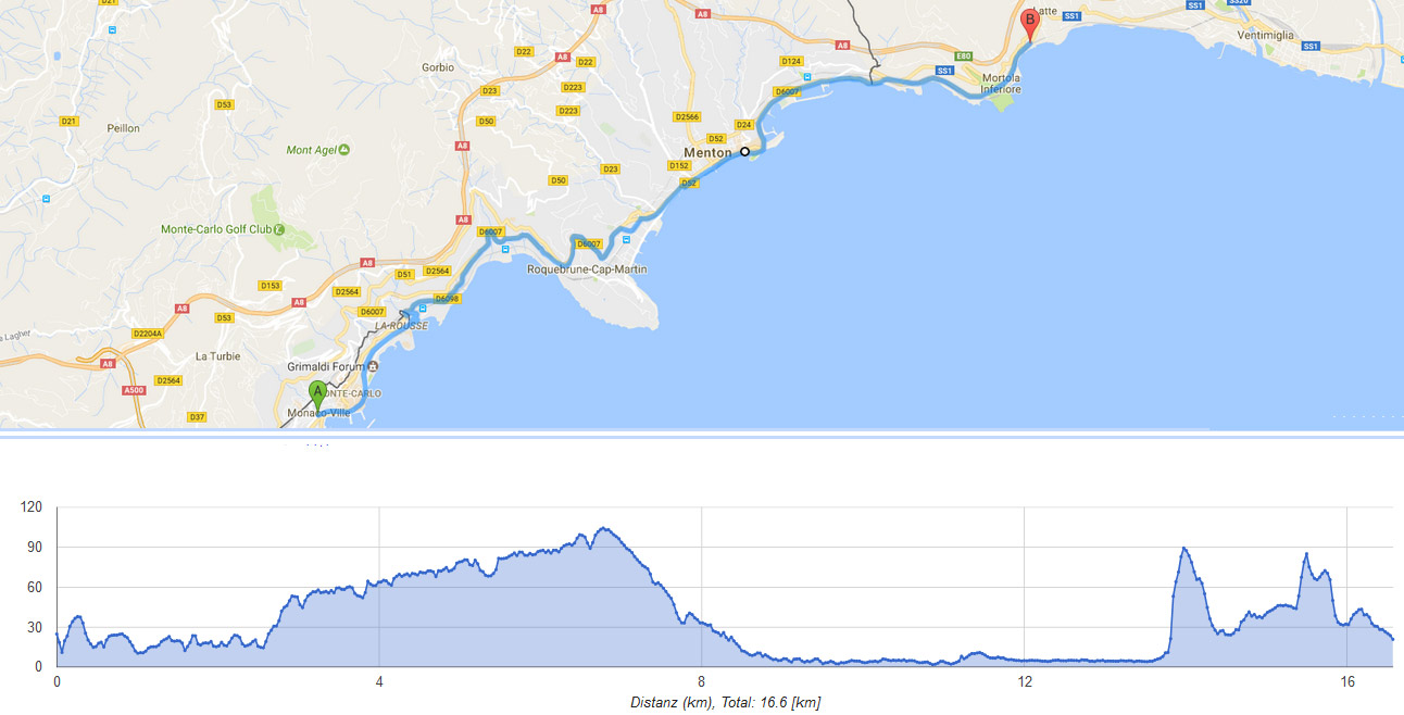 Und Heute habe von Monaco kleine Strecke nach Italien durch Menton gemacht. Zurück habe ich kein Glück gehabt. Volle Stau. Heute Spiel Dortmund -Monaco, Überall viele Poliziesten. Ich habe eine Stunde gebraucht zurück zu kommen. Gesamt Strecke 32 km. Gebliebene AKKU Kapazität 61%. Auch mit Stau man kommt ca. mehr als 80 km Hier sind die Fahrt-Profiele
