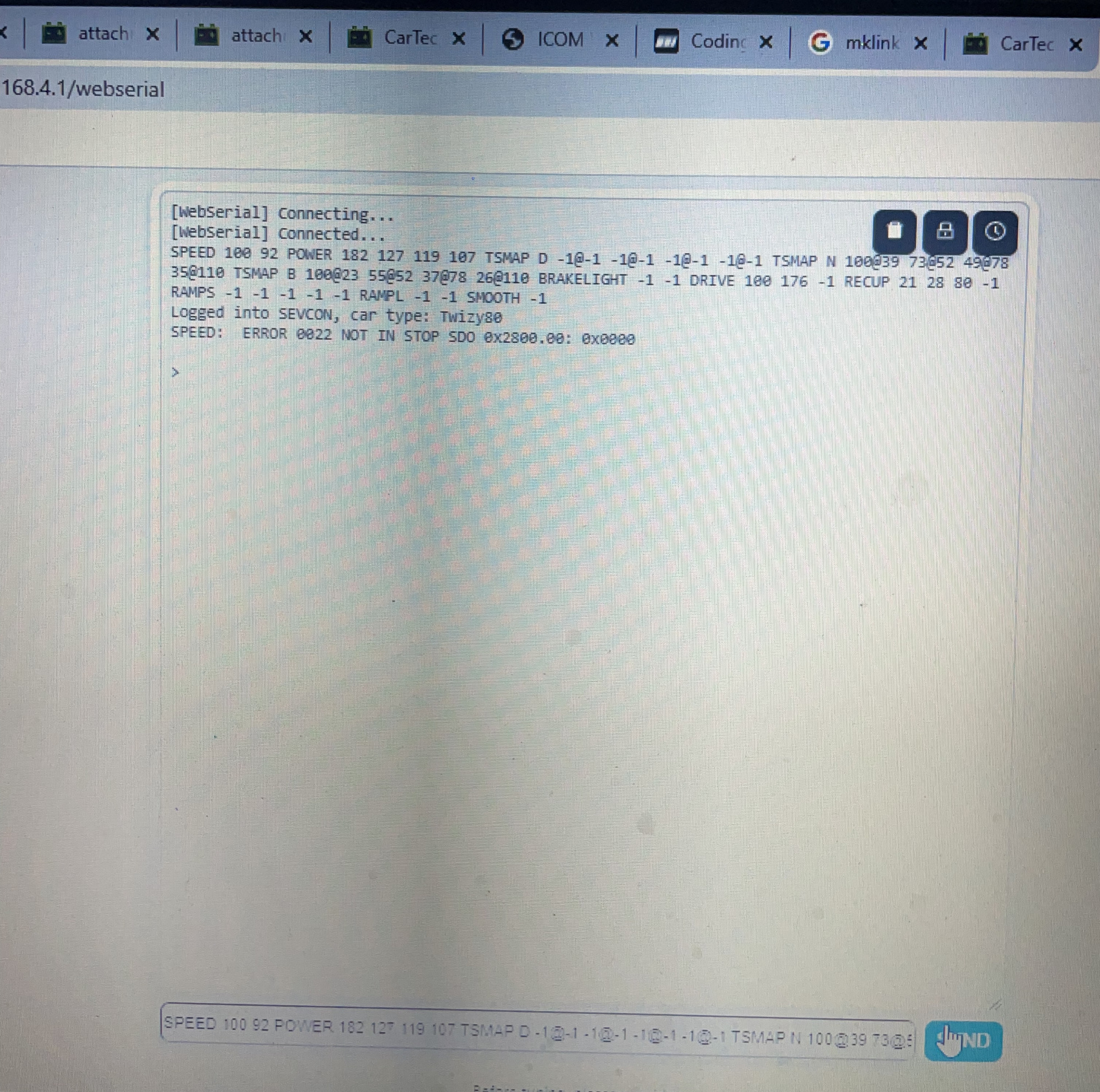 Ob das fehlerhafte SPEED Kommando dazu führt, dass die STOP Leuchte dauerhaft aktiv ist, müsste getestet werden.