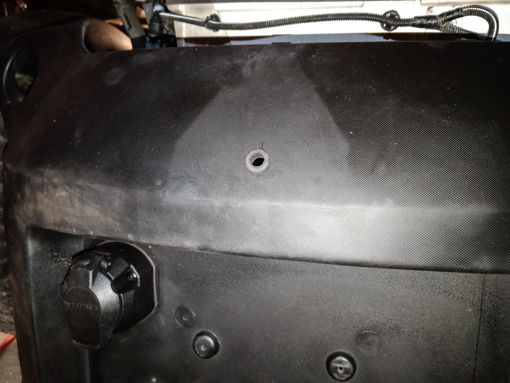 Loch rein und die Gummimanschette vom Kennzeichenhalter gleich zweitverwerten.