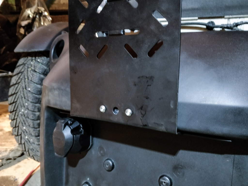 ...und mit M6 (ist doch M6, oder?!?) unter Zuhilfenahme von Beilagscheiben und Federringen (alles rostfrei) angeschraubt.