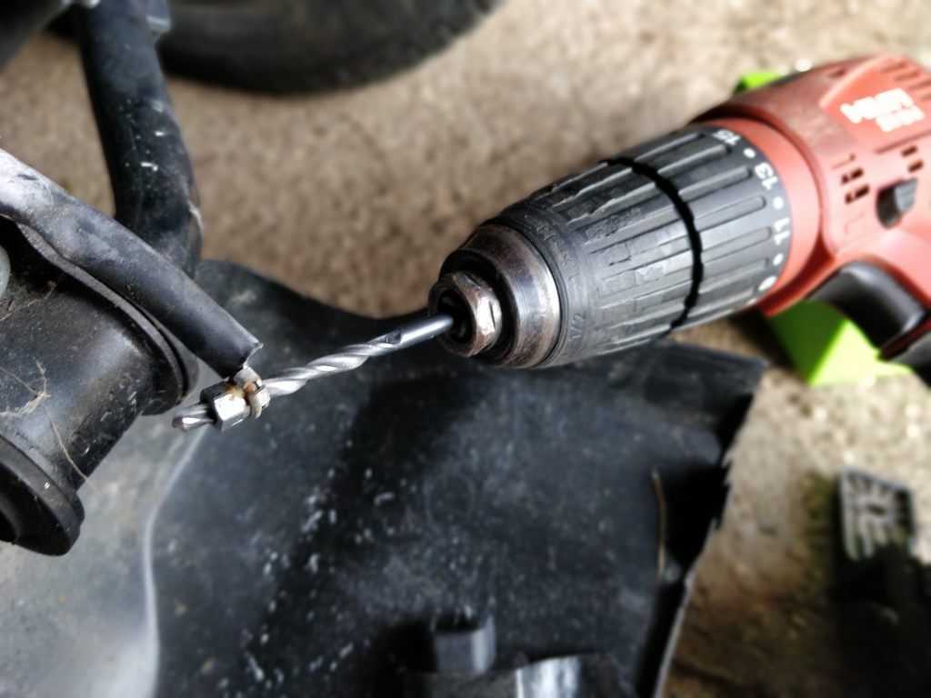 Erst mal die Kabel durchschneiden damit ich die Beleuchtung ans andere Ende schrauben kann, die Halterung wird nämlich