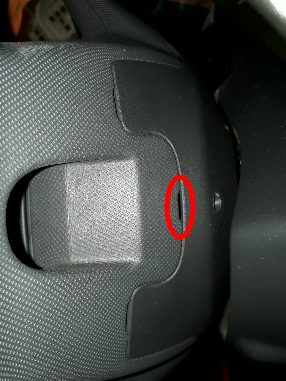 Habe mal ein Bild vom Lenkrad von hinten gemacht. Meinst du diesen Schlitz ?