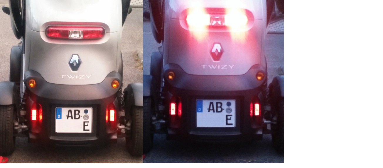 Passt schon ganz gut, jedoch geht die LED bereits aus, wenn der Twizy noch nicht ganz zum stehen gekommen ist und dann würde die Bremsleuchte erst angehen.