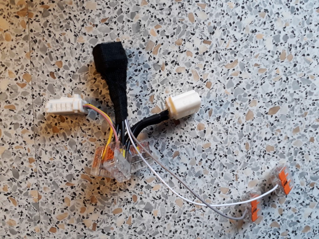 Um das ganz steckbar zu haben, habe ich von einem Schlachttwizy sowohl einen alten Bremslichschalter und ein Stückchen des dazugehörigen Kabelbaums bekommen (Danke Kai