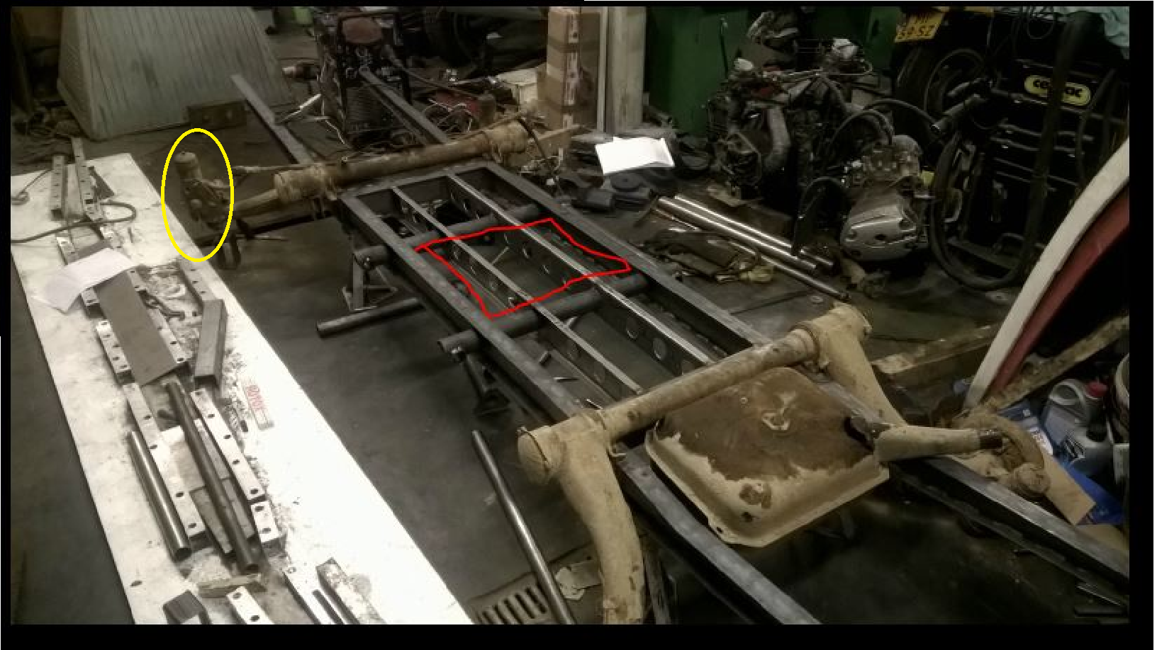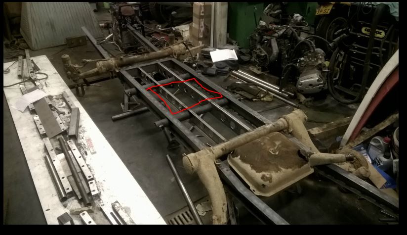 Weil ich die chassis selber bauen darf und kann könnte ich die batterie im Chassis unterbringen sehe hier unten in Rot.. Das wurde "genau" passen..