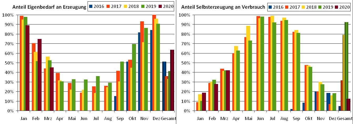 Zur Erinnerung: Wir haben neben der PV-Anlage auch einen Akku (LG Resu 6.5). Dieser hilft uns, den Eigenbedarf zu erhöhen. Die Wintermonate sind aber ein echtes Problem, da die PV-Anlage da pro Tag so wenig produziert, dass bei weitem noch nicht mal die Grundlast abgedeckt ist.Selbst im Sommer kommen wir nicht auf 100% Autarkie, da immer wieder mal mehr Last gezogen wird, als die Anlage und der Akku hergeben (z.B. verregnete Tage, Küche/Waschmaschine/Auto laden gleichzeitig, ...)