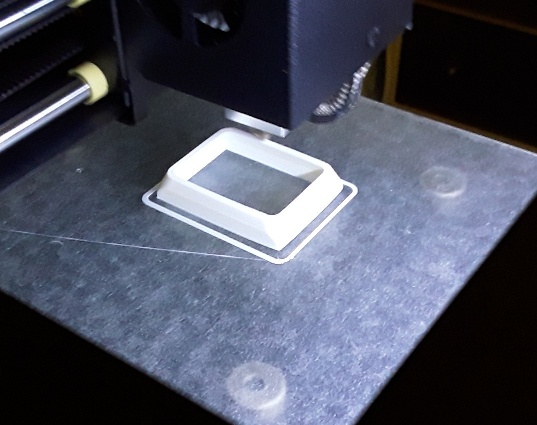 Imho ist das Glas mit nem Folienbelag, relativ rau aber haftfrei... soweit auch sinnfrei, es hat nämlich quasi nach weiteren 1mm "Höhengewinn" das Druckteil warum-auch-immer weggeschoben.. danach hat er nochmal von vorne angefangen, nach 5mm wieder weggeschoben.. jetzt läuft er anscheinend.. war imho der Energiesparmodus von (spuck) Windoof... Linux iss grad offline...