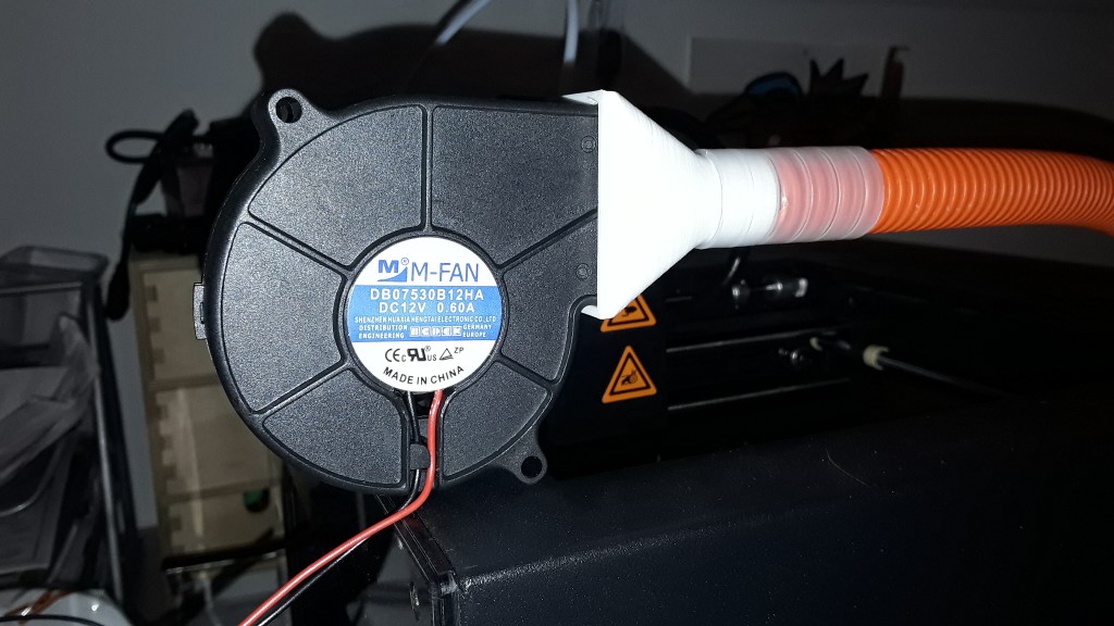 ... nochmal, der Lüfter bläst direkt durch in die Seitenteile des Laders verbaute Durchführungen ins Innere des Laders.