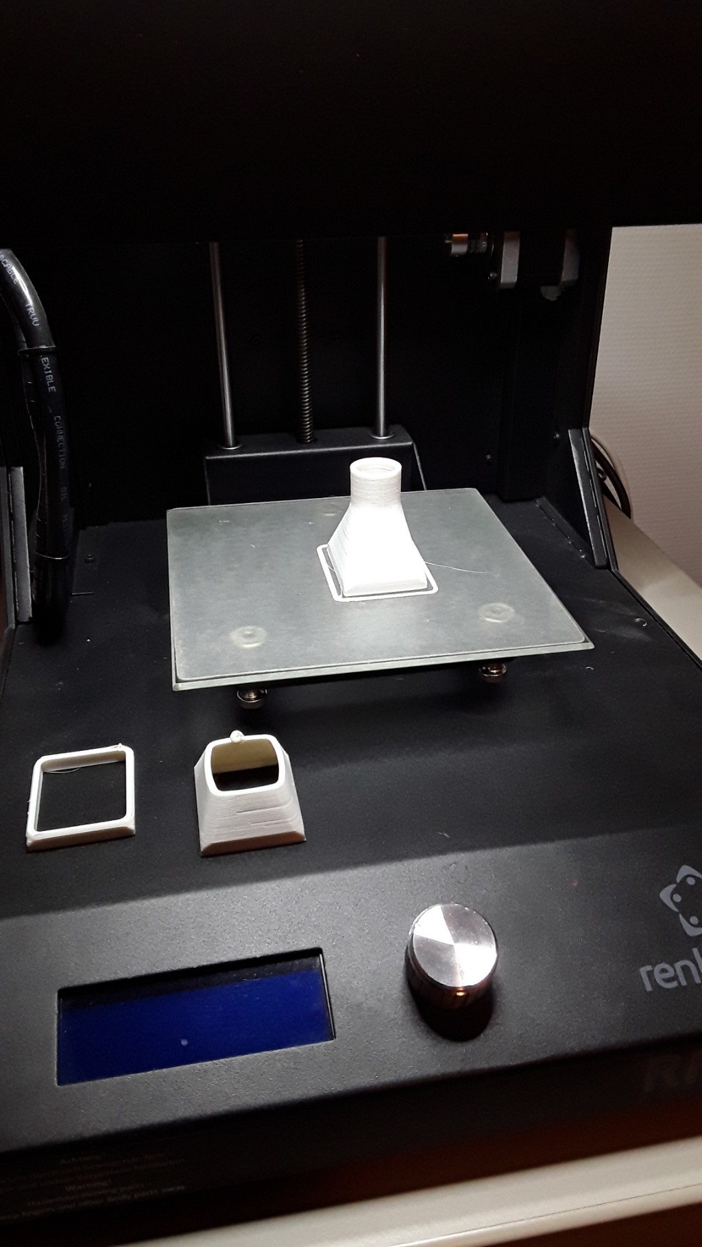 Am rande.. den ersten Probedruck hab ich ohne groß nachzuschauen einfach gestartet, da lag das Teil aber noch um 90° gekippt auf der Seite... _DAS_ druckt er dann ohne Stützstruktur doch nicht..