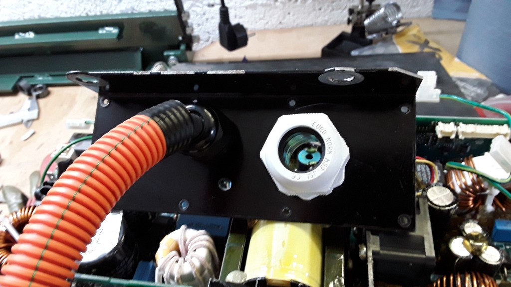 Ist saueng dort, zumal ich ja auch noch die 58V anzapfen muss um den externen DC/DC direkt aus dem Akkuanschluss des Laders zu speisen. Die 2x6■ laufen durch die graue 20er Verschraubung. Die schwarze ist für das DC Laderkabel.