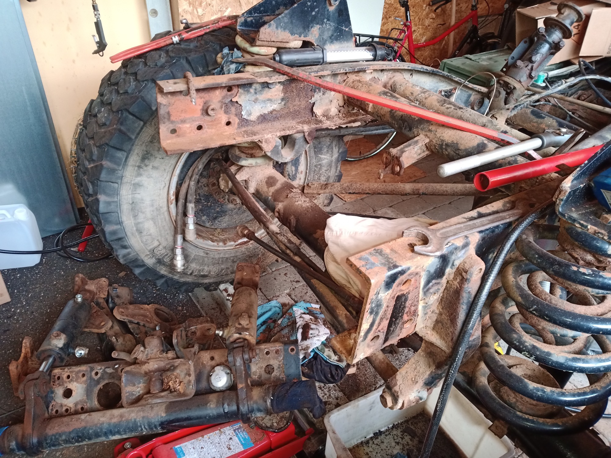 Mal gespannt ob ich die Handbremse hinbekomme.. imho ist "nur" die automatische Nachstellung hinüber.. die Sättel sehen gut aus, und die Scheiben sind imho fast neu, auf jeden Fall nicht mehr die Ersten. Dann noch die angeranzten Kotflügel tauschen damit da garnicht erst Fragen aufkommen und ab zur HU. O.k., die unmengen Spinnennetze vorher noch wegputzen.. sieht besser aus..
