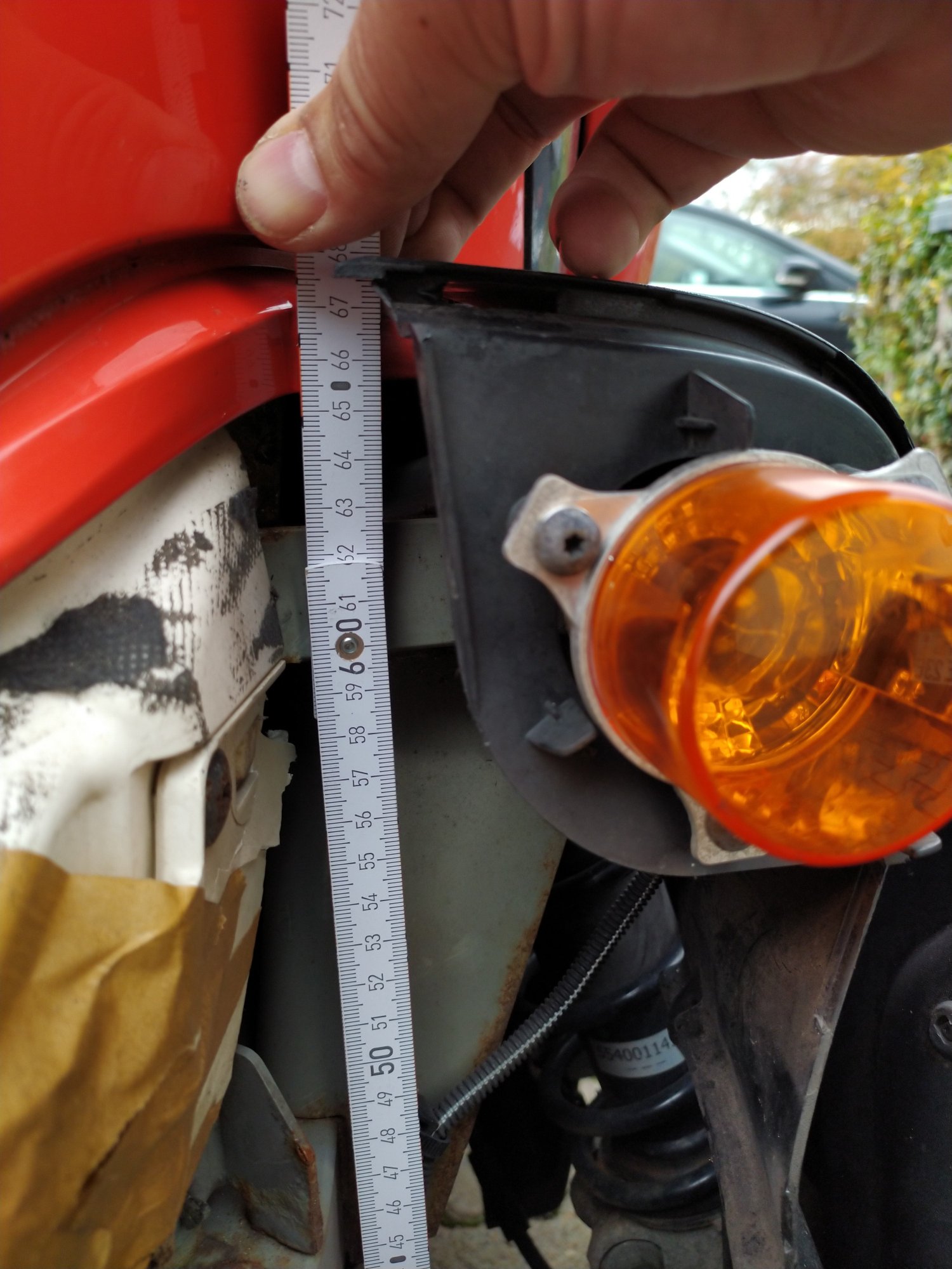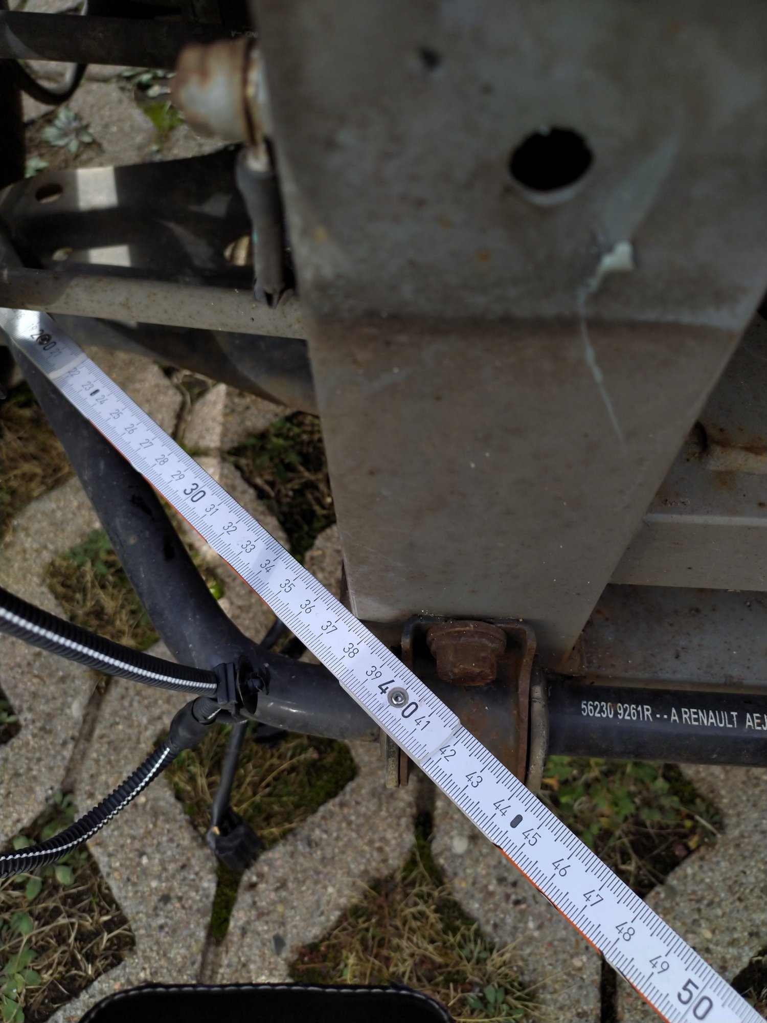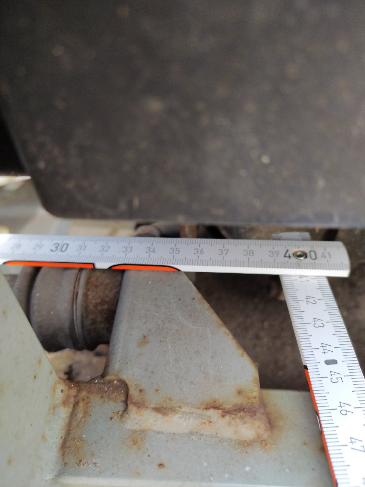 | unterhalb Stoßdämpfer, Loch Aufnahme Dreieckslenker zur Rahmenkante, beidseitig etwas über 37 cm: | |