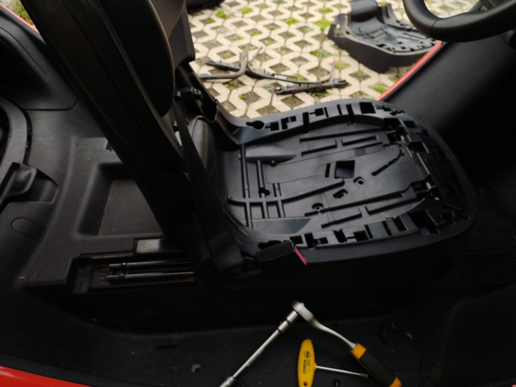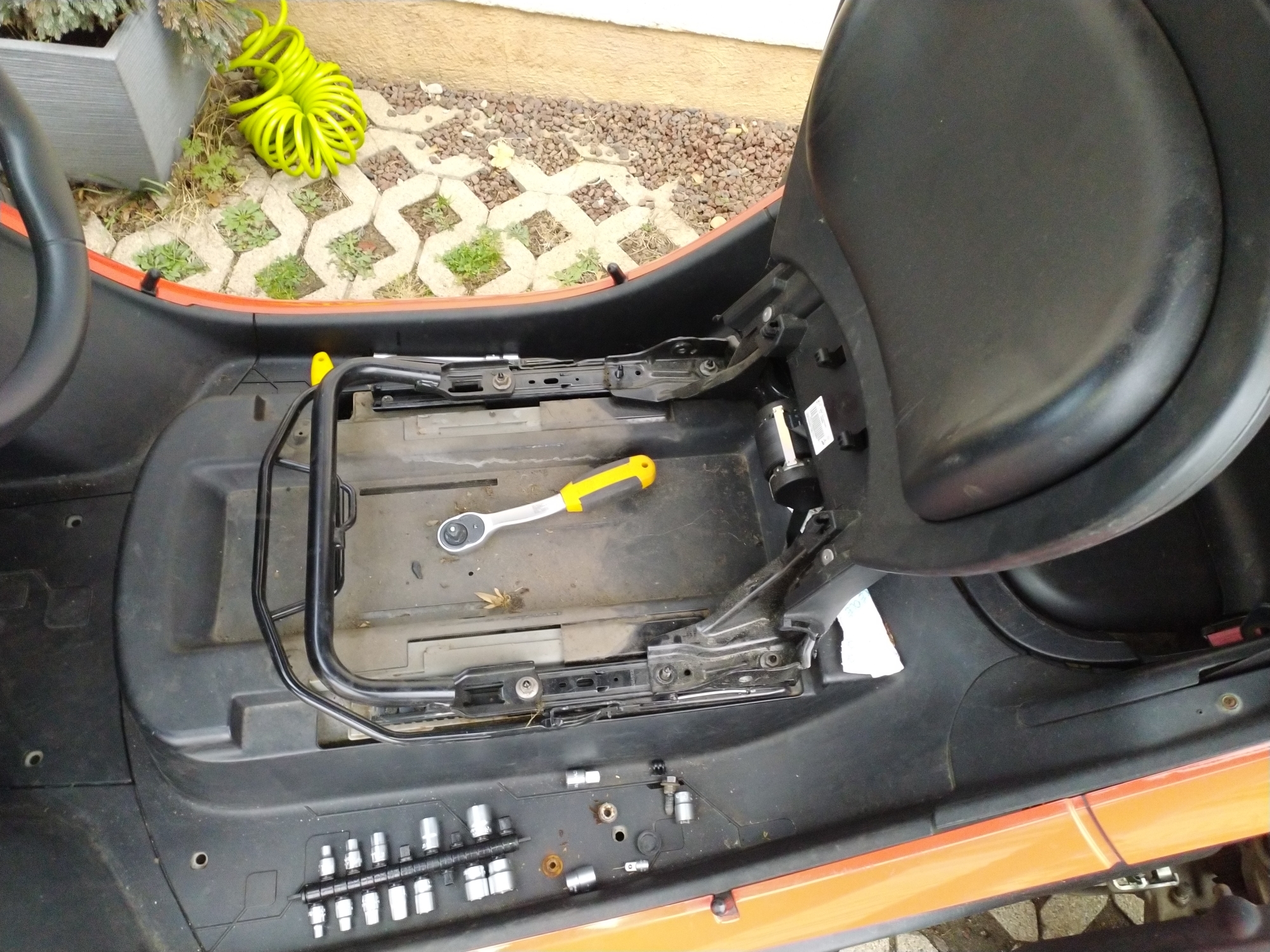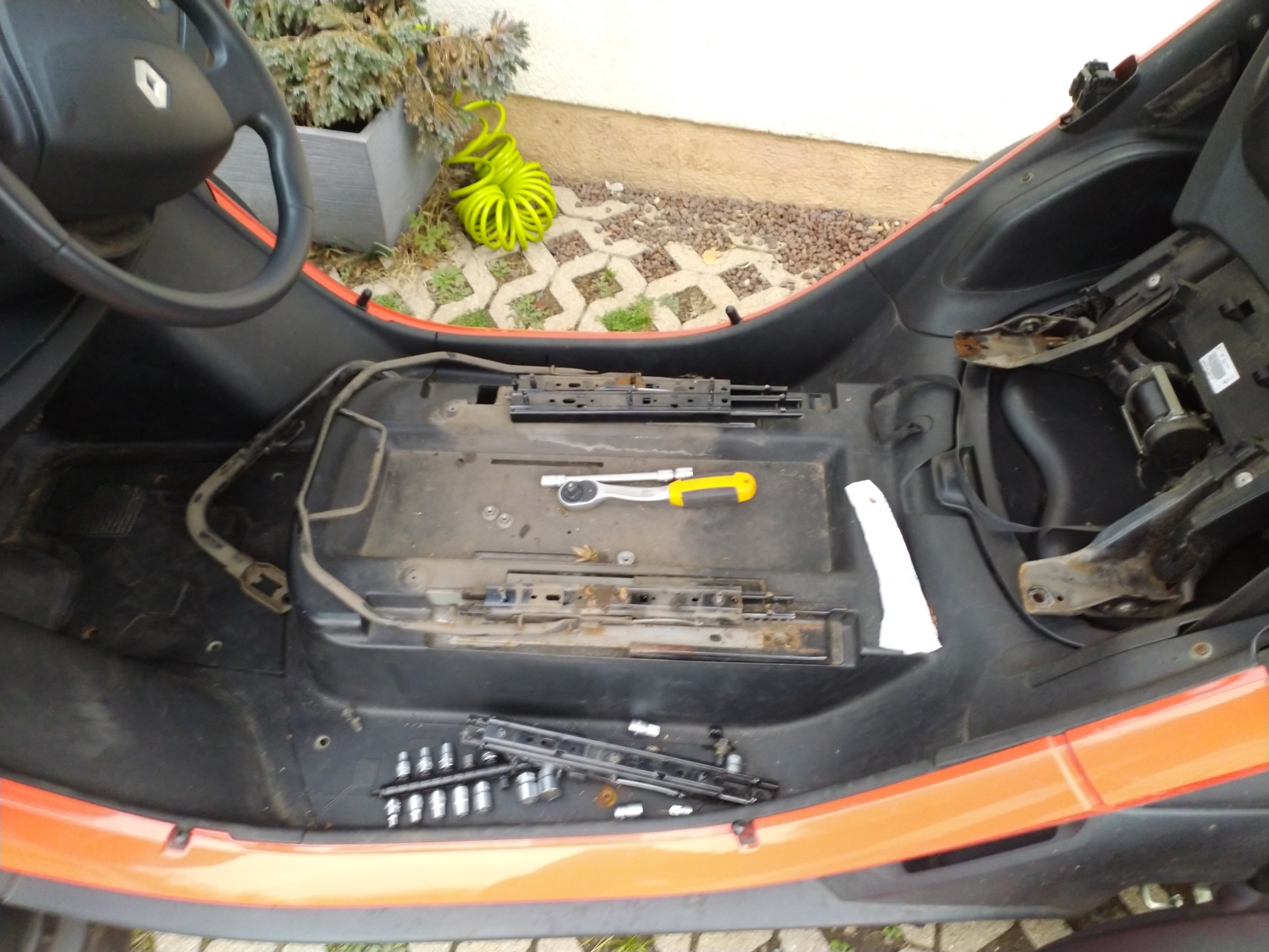 Da ich noch den Sitz samt Schienen von meinem T1 im Keller hatte, und ich hatte schon sooo oft überlegt die zu entsorgen,... eine halbe Stunde Arbeit.