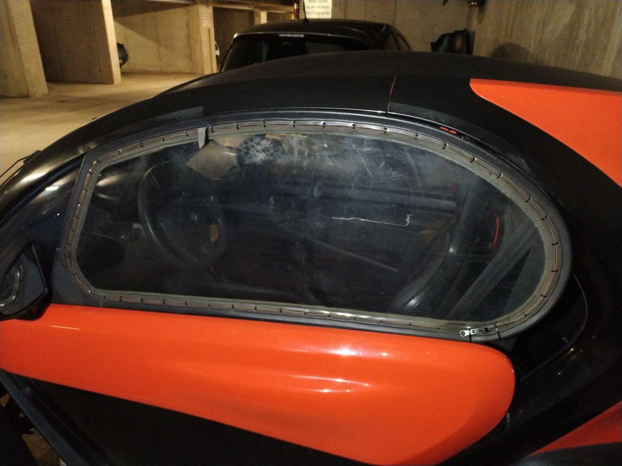 Der Reizverschluss war schon angegammelt, auf der BAB hat es dann das ganze Folienfenster raus gerissen - blieb noch am Reißverschlusszipfel hängen, so ging es nicht verloren.