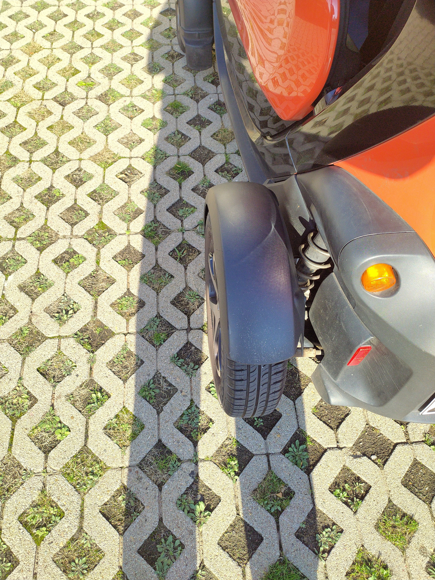 Das rechte Hinterrad schielt leicht nach 11 Uhr, begleitte von nem "positiveren Sturz".