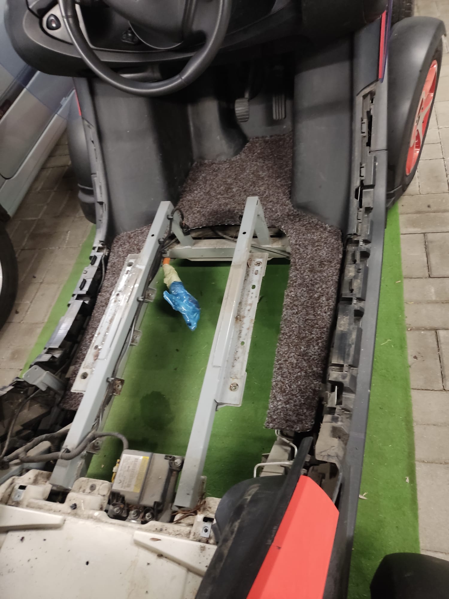 Der wurde soeben mal schnell geschaffen. Eigentlich ging es relativ einfach. Rahmen (Lackiert) vorne und Hinten ab. (Bummerang). Anschließend die Lackierten Unterteile "Schweller". Ansonsten muss der Sitz natürlich Raus (hatte ich eh vor, um die Sitzschale (provisorisch) zu Reparieren. (@TwizyChrisy Nein, es kommt kein Smart Sitz rein. Für MICH!! (1,90, 66kg) ist der Twizysitz gut. (Und bei einem komplett offenen auch gut Wettergeschützt)). Dann war es das schon fast. Vorne noch die Abdeckung des Laders und die beiden kleinen Abdeckungen Links und Rechts am Rücksitz (Eines davon Verdeckt den Gurt des Fahrers)
