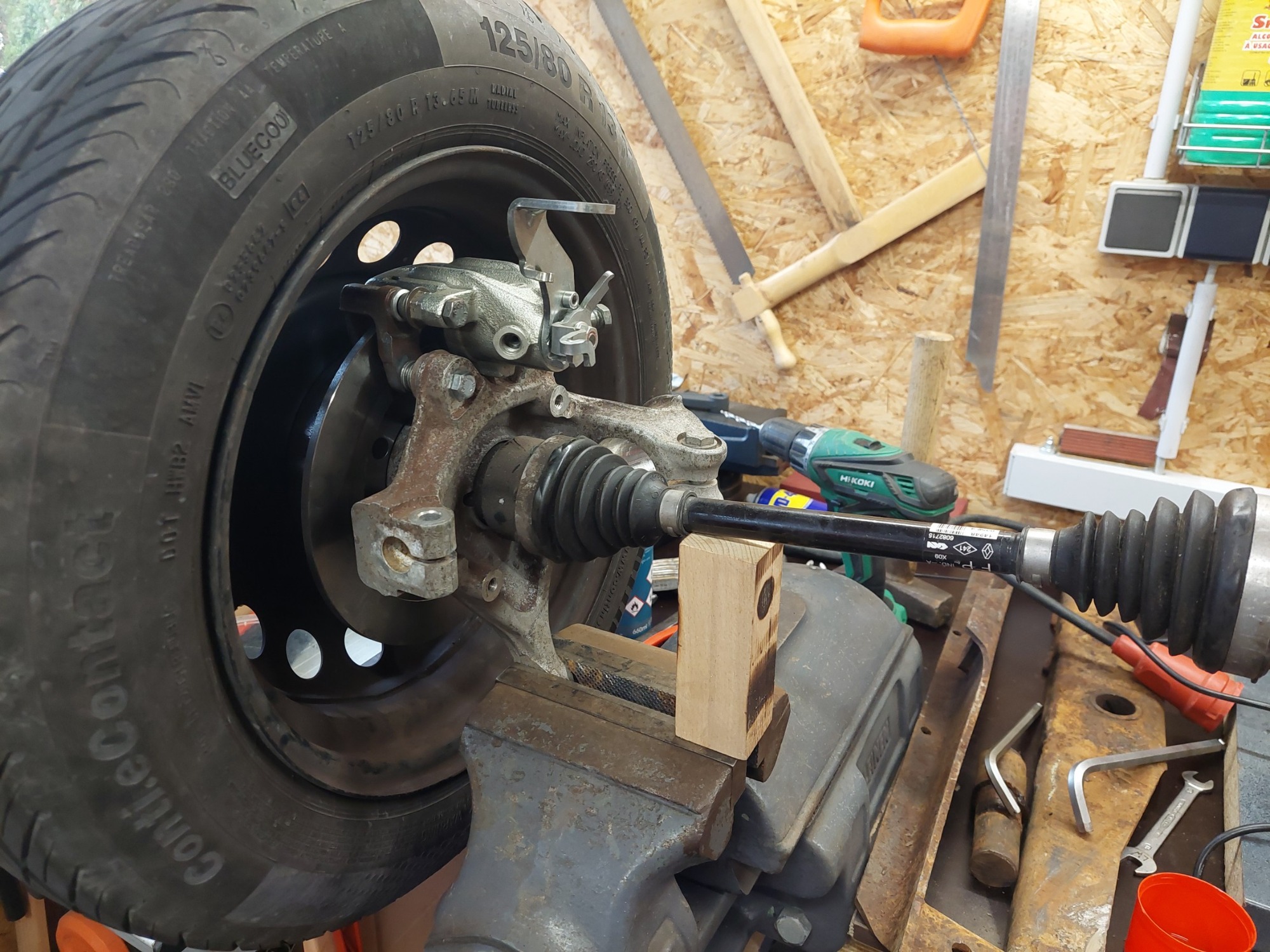 Neues Radlager in den Achsschenkel einpressen, die neue, getrennte Nabe ebenfalls.