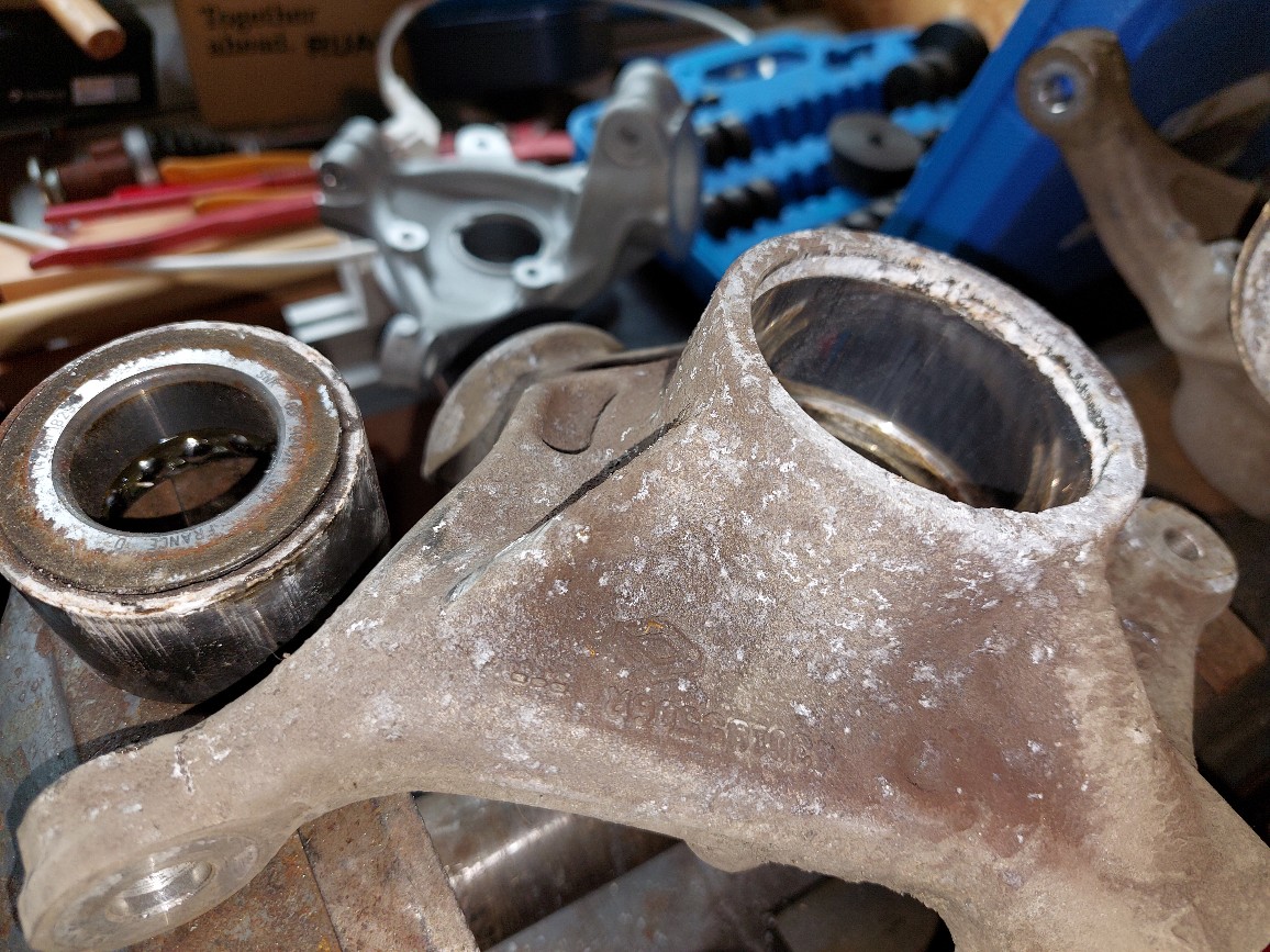 2.) Lassen sich hintere Bremsscheiben mittlerweile auch ohne Achsschenkel wo ordern? Wenn ja, wo? Und ist da das Abschluss-Teil vom Lager mit dabei?