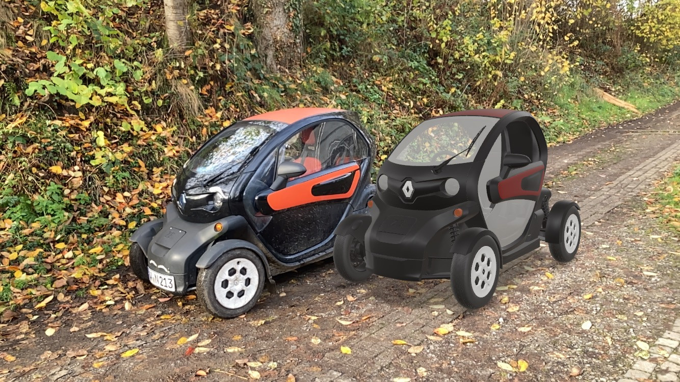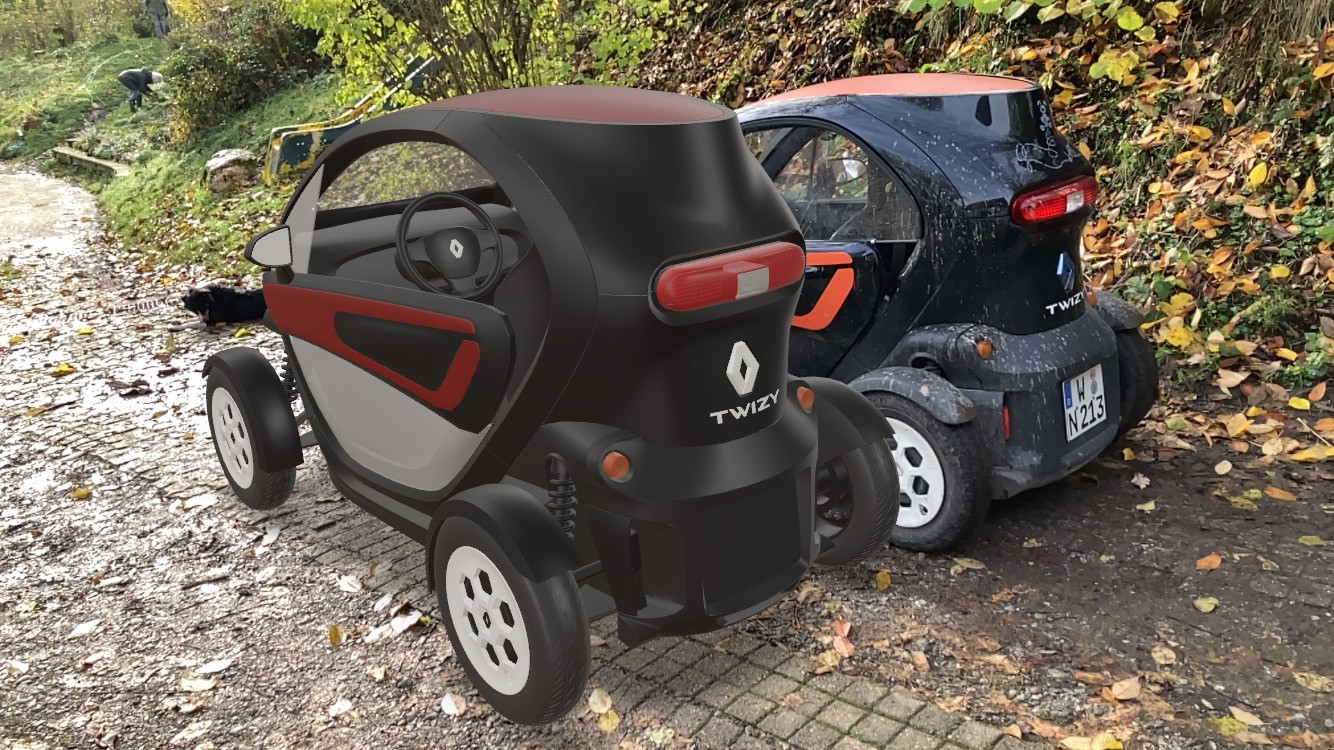 Ihr könnt ja auch mal den virtuellen Twizy neben einen echten Twizy stellen.