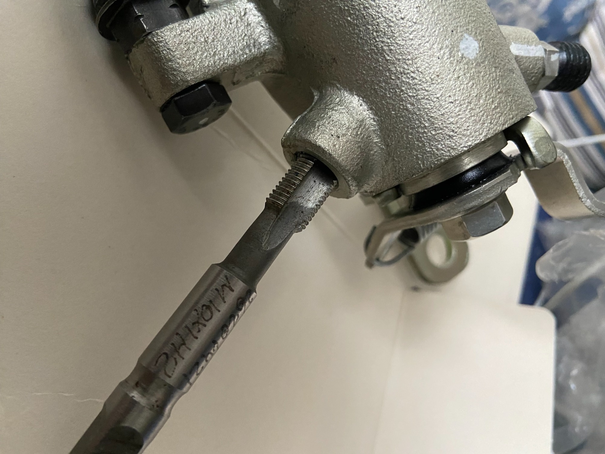 Beim Sattel Hinten passt der Gewindenbohrer M10 x 1 prima.