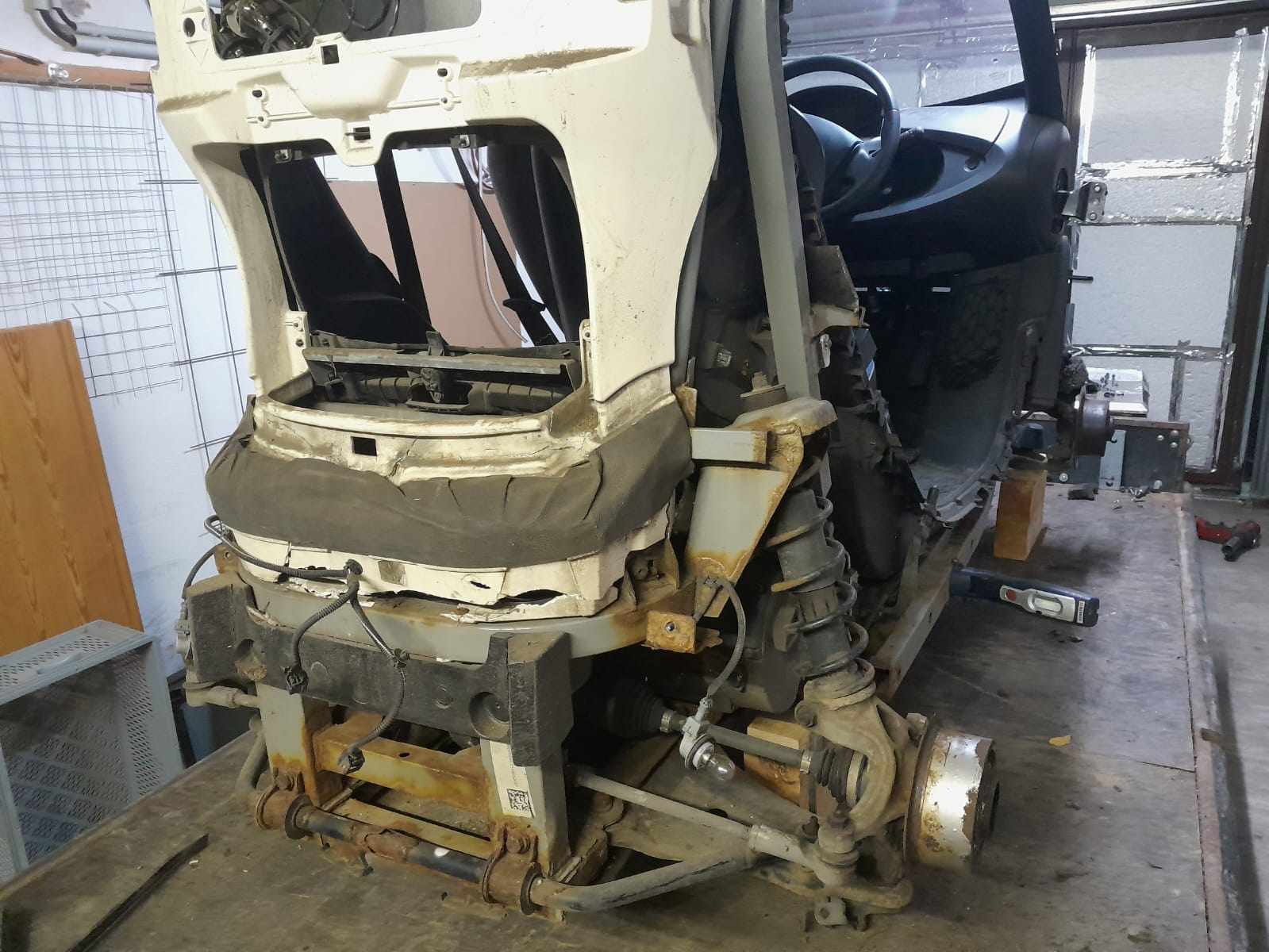Auf jeden Fall habe ich heute wieder eifrig zerlegt und hinten jetzt nen Auffahrunfall entdeckt. Der Rahmen unten rechts hat auch was abbekommen.