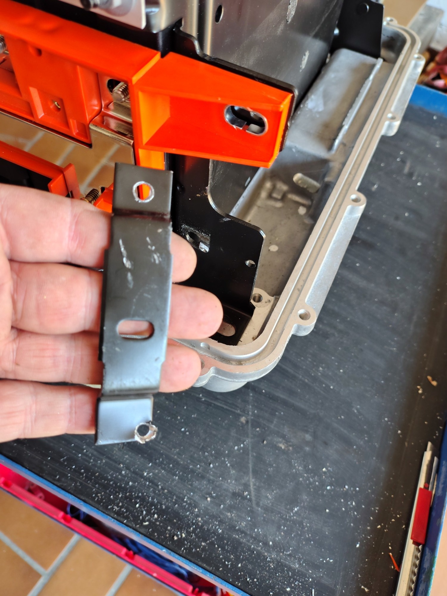 Irgendwie sind die beiden Stützplatten doch nicht identisch? Jedenfalls war der Bügel der Stromschiene im Weg. War...