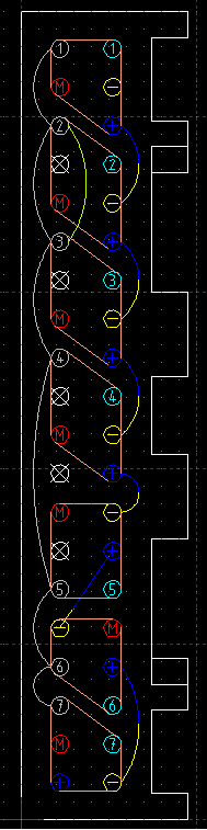Bei der Belegung des 40-poligen Stecker kannst du die grau gezeichneten Brücken 1-2-3-4-5-6-7 und auch jeweils die Brücken zwischen den blauen Plus- und den gelben Minuspolen ignorieren.