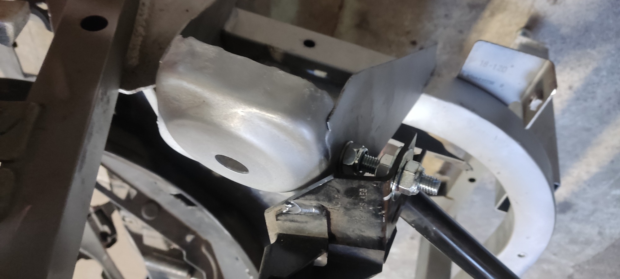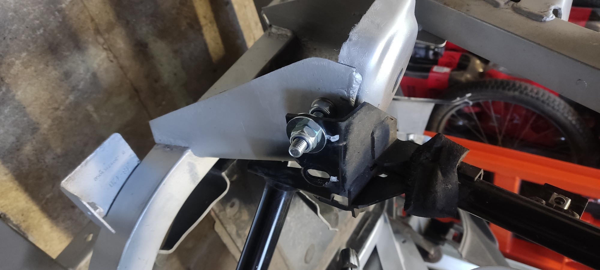 Da der Rahmen ein Zweisitzer war, und ich Teile davon bereits weitergegeben habe, war nun der Umbau zum Cargo etwas schwierig. Es gibt keinerlei Maße, wo der Hilfsrahmen der Klappe montiert wird und natürlich auch keine Maße. Also alles mehr oder weniger Freestyle dran gebaut. Unten sitzt der Zusatzrahmen auf M10 Bolzen und oben an zwei genieteten Blechen mit M8. Das ganze ist stabiler, als der Originale Rahmen (und gepfuscht war das Original von Renault an so vielen Stellen ähnlich