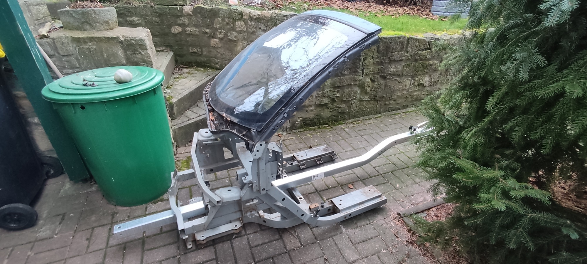 Die Front wiegt so nackig ziemlich genau 60kg. Dementsprechend noch etwas abspecken und dann wird das Gewicht passen. Das verbliebe Heck reicht Theoretisch tatsächlich noch für einen Twizy Cargo Anhänger