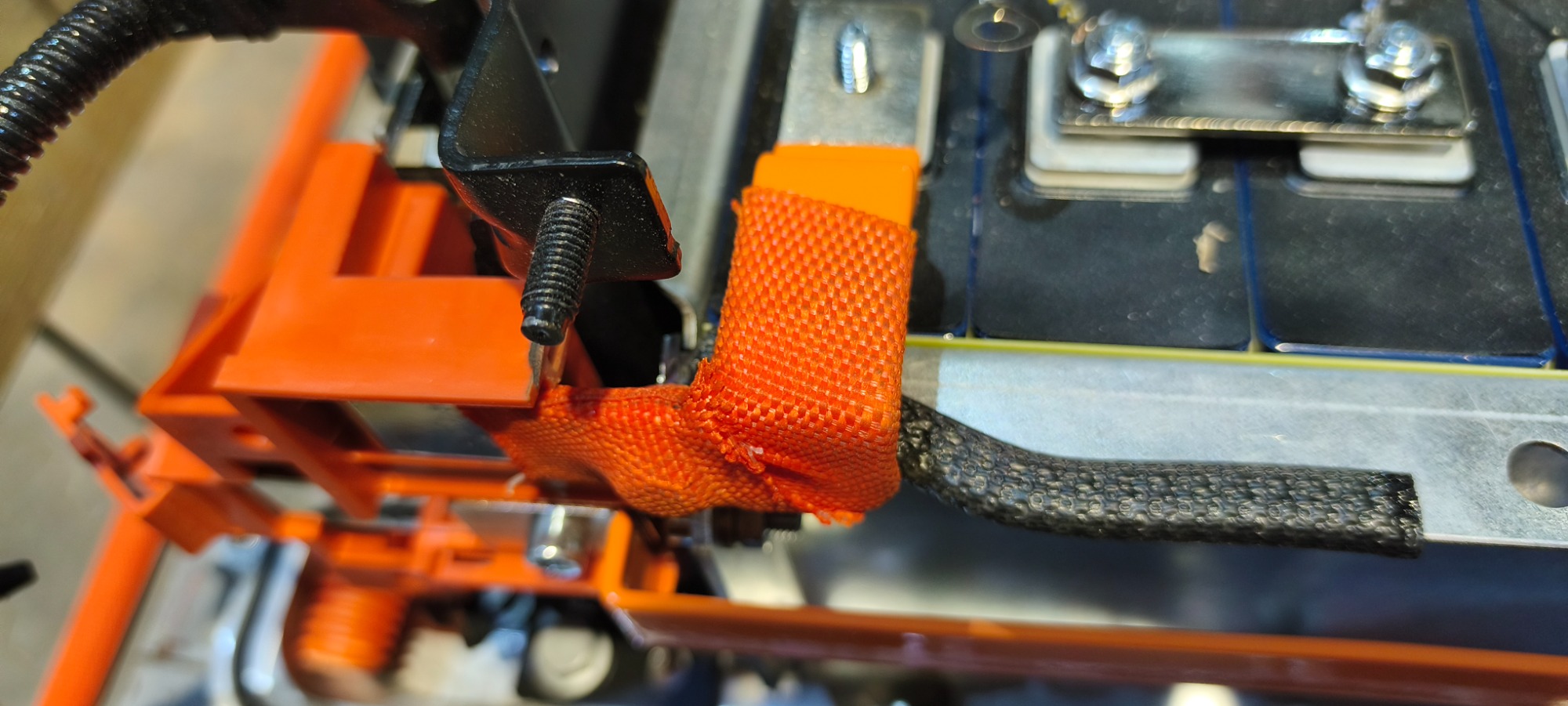 Allerdings brauchte ich dann einen 3D-Druck-Halter für den abgesägten orangene Stromschienenhalter. Warum führst Du den +Busbar nicht bis an die 500A-Sicherung? Dann kannst Du den Weg dahin freier planen.