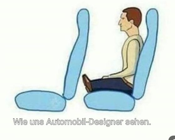 Sag ich doch seit langem:Pfälzer68 schrieb: ...... Weder kannst hinten als Erwachsener sitzen noch gibts Kofferraum... ...