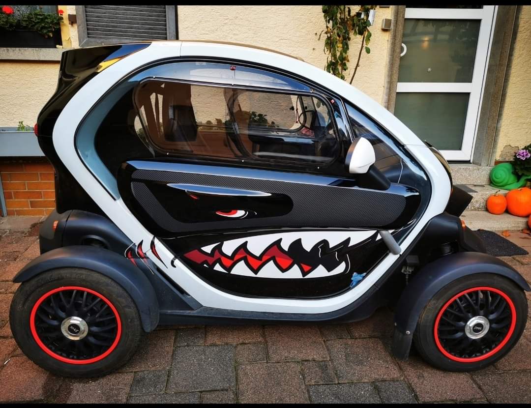 Gregor mit seinem Twizy im Hai Design wird im Rhein Main Twizy Team nicht vergessen werden!